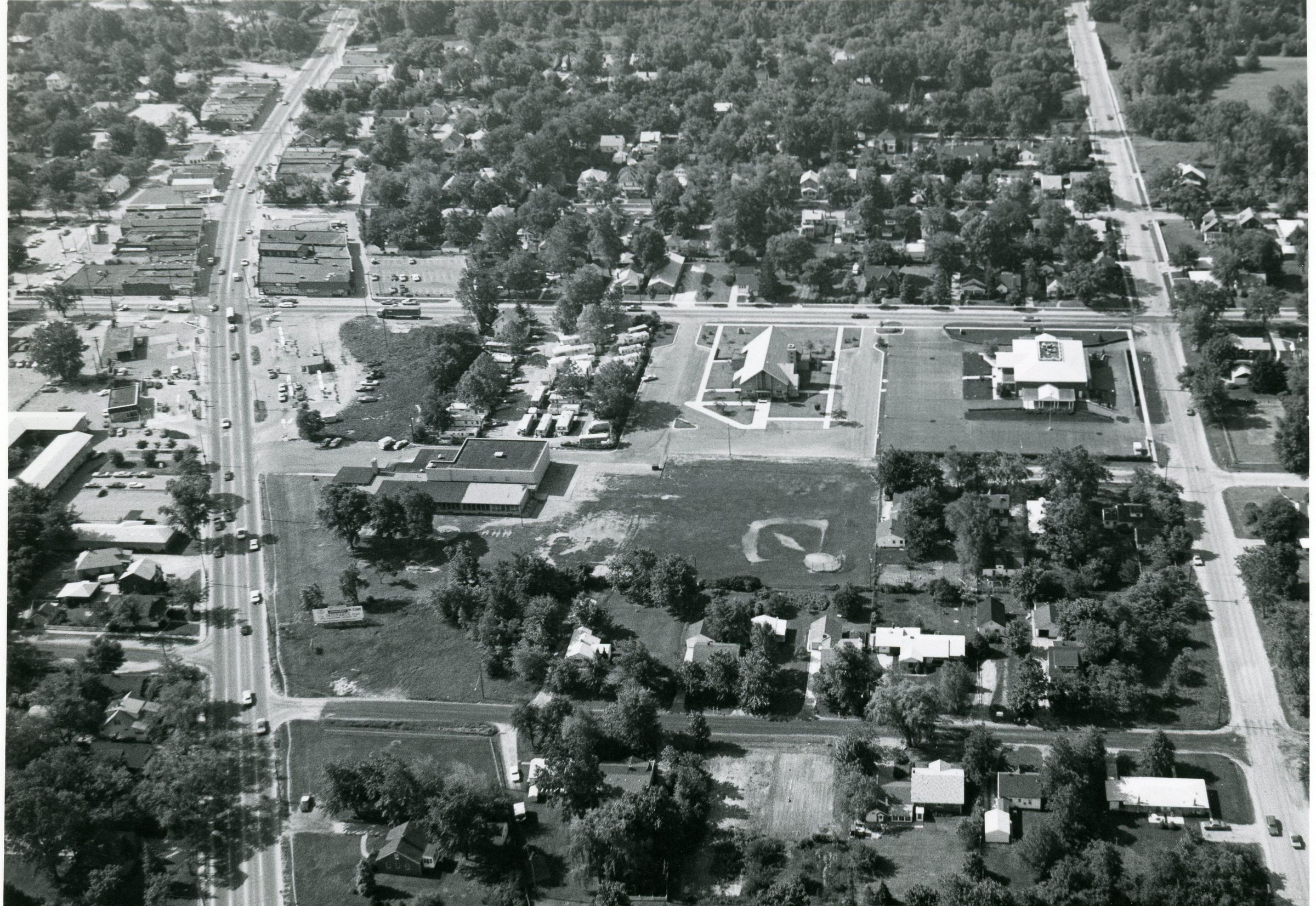 Over Westland, Glenwood and Wayne road looking South. Glenwood runs parallel at top 1/3 of picture, wayne road is main road on left side.Cataloged By