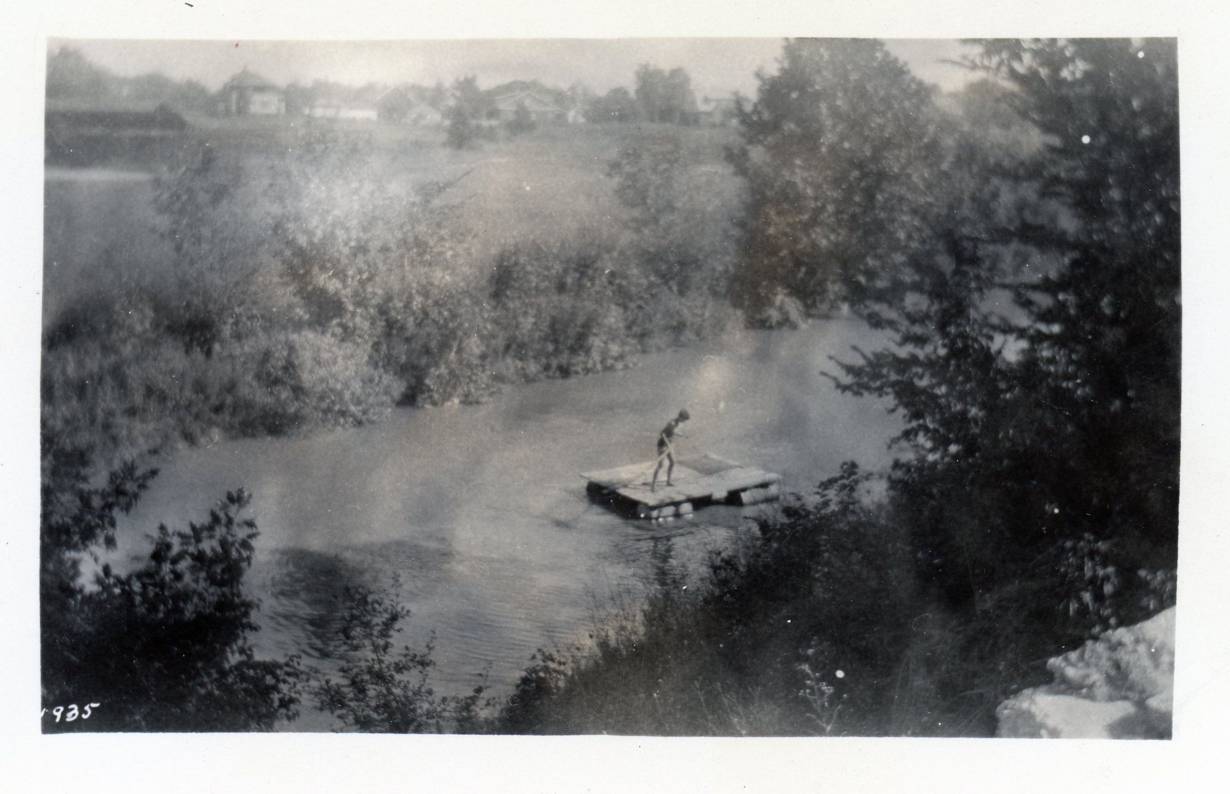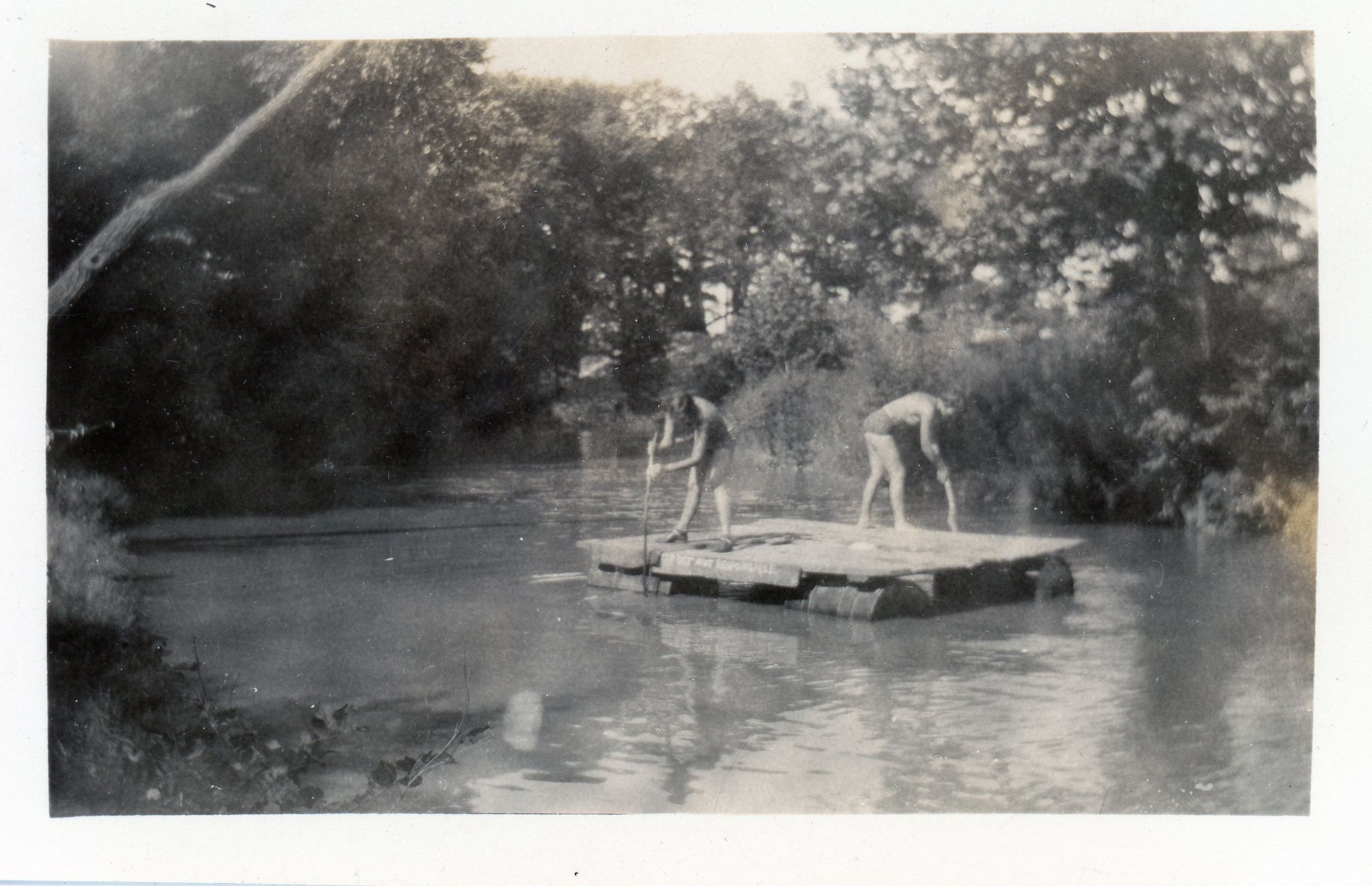 Rouge between Clark and Elizabeth 1935. Boys on home made raft