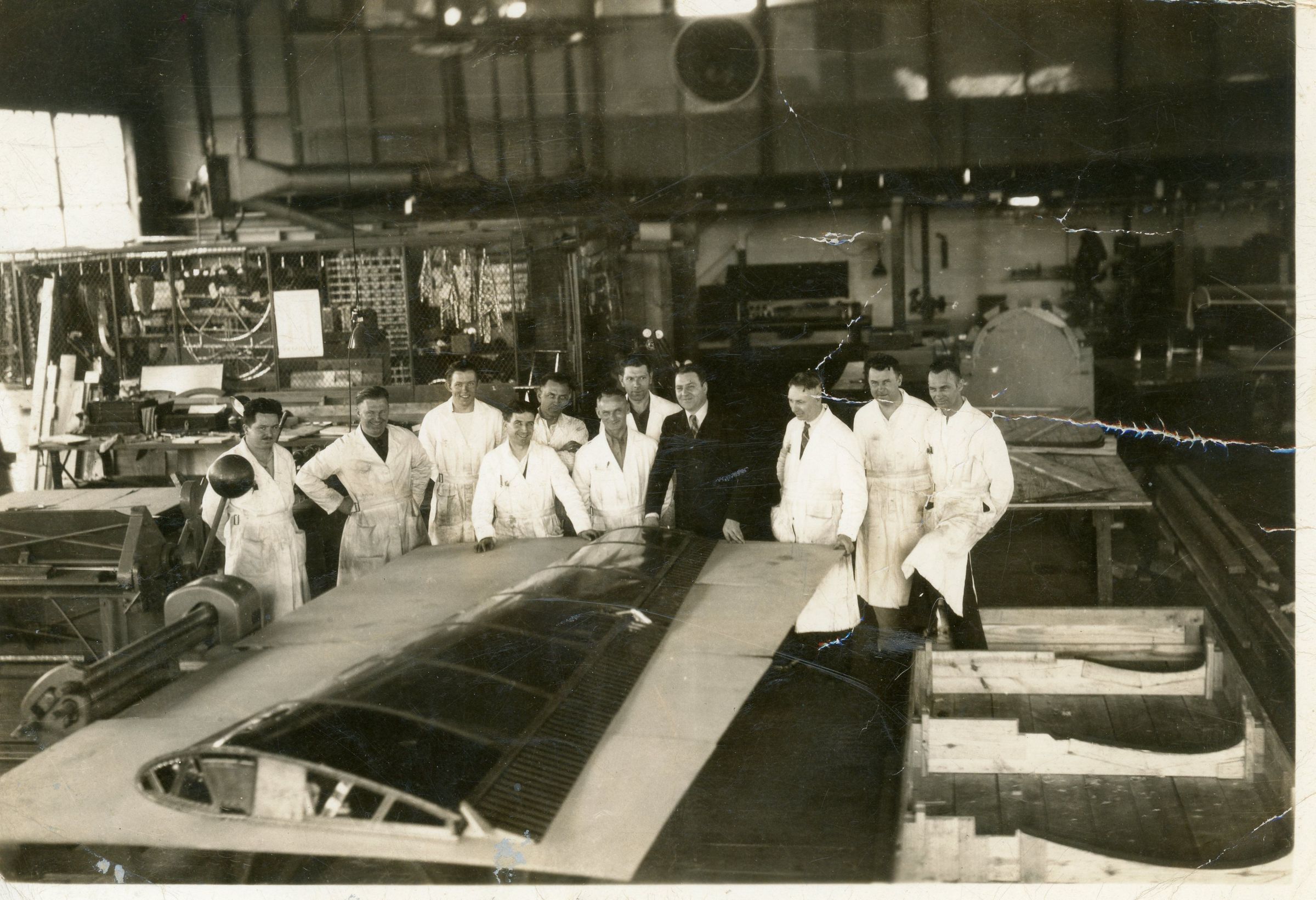 Inside the Stinson Aircraft Factory at Wayne, Michigan. Likely late 1930s