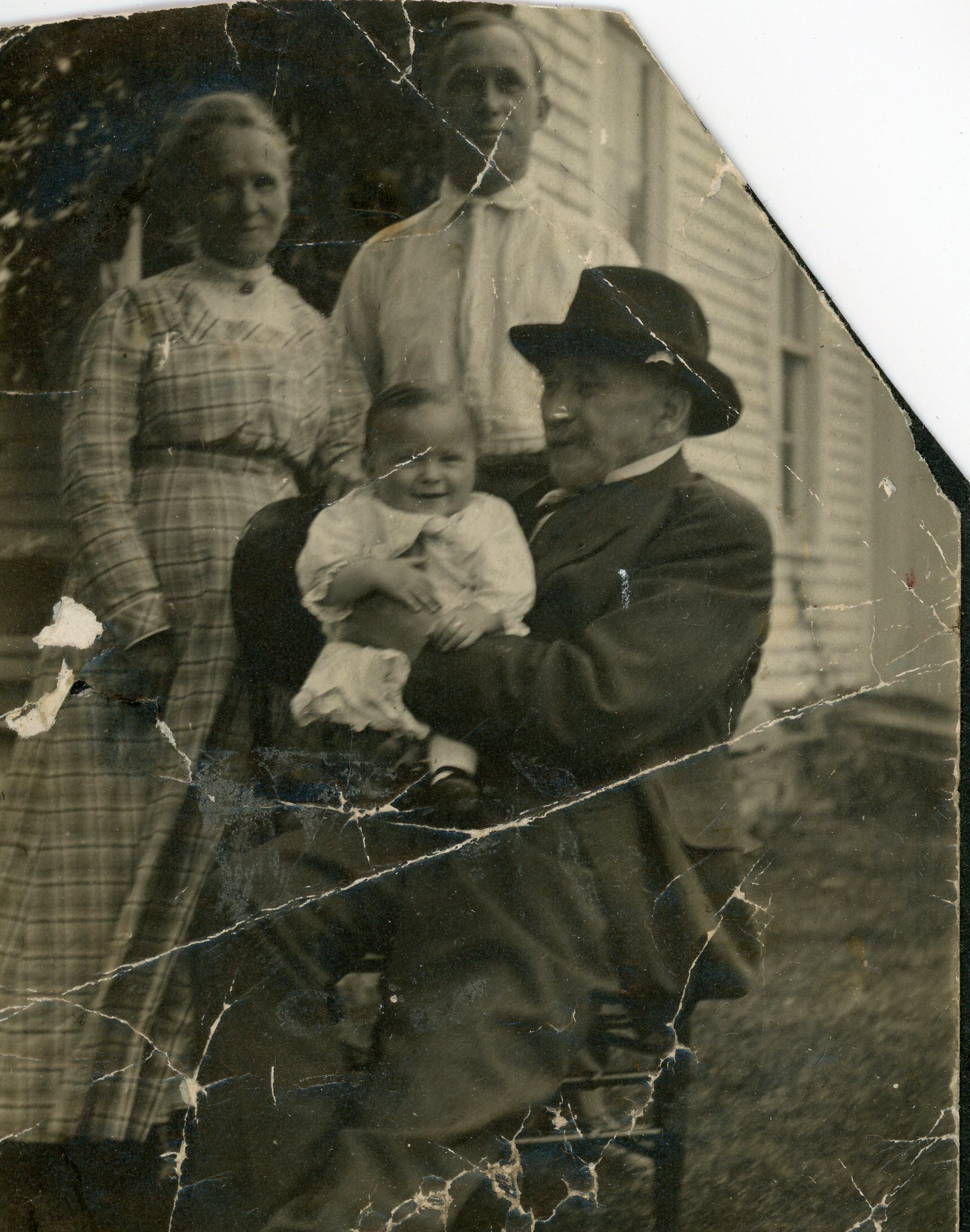 Bird Family, From the Richard Jay Bird Family Portrait. Seated on his father's lap is Robert Bird who was a dentist in Wayne from about 1930 until his death. Robert's Grandfather (Robert Bird) was a member of the Twenty fourth Michigan Infantry Regiment. The Wayne Museum has his musket and his copy of the regiment's History. Maurice Bird married Vina Butler on 11/27/1907. Twins, Merrill and Nancy Bird were children of George M. Bird.Cataloged By