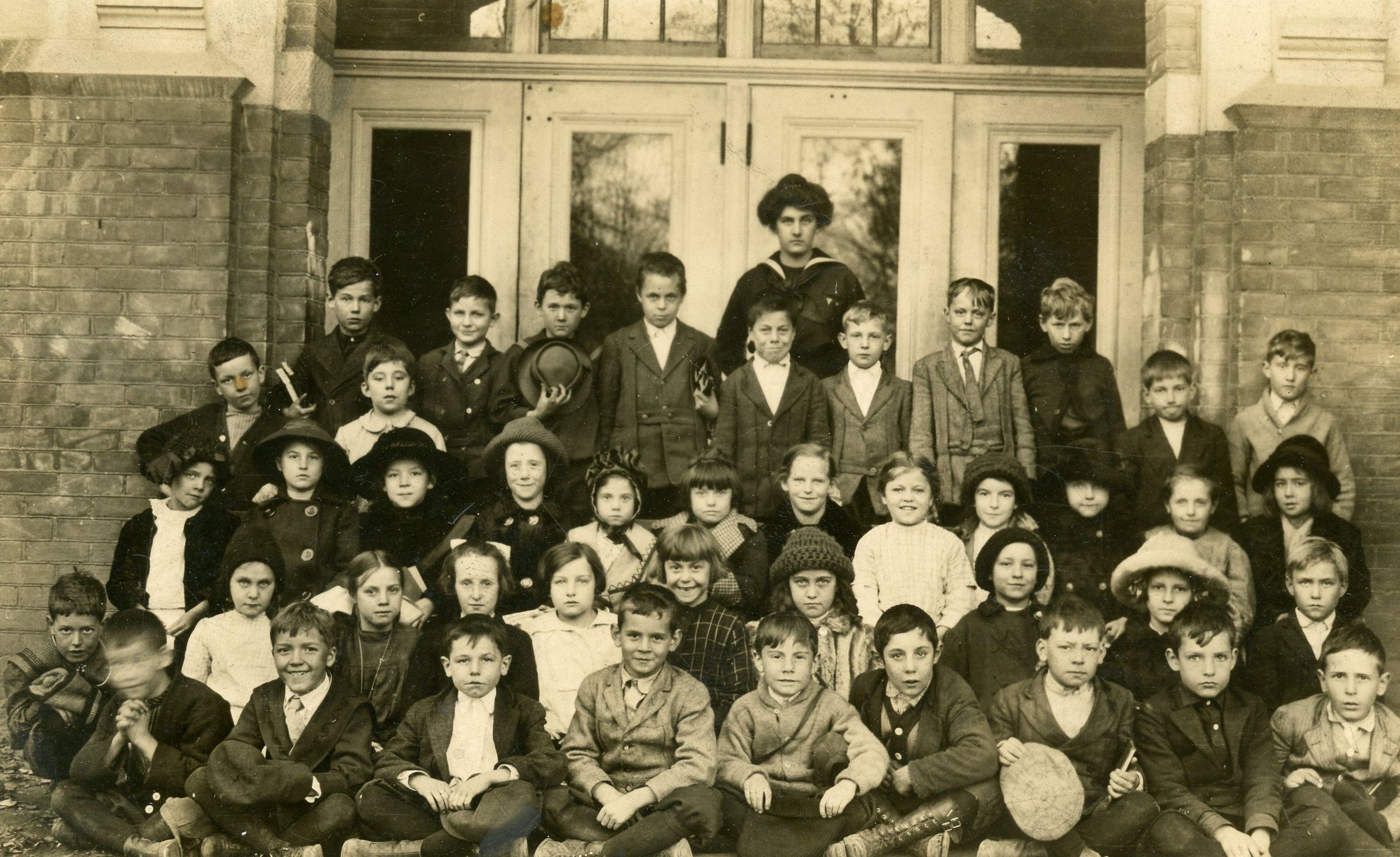 Wayne School 2nd Grade. Florence Fitzgibbons is the teacher. About 1914.