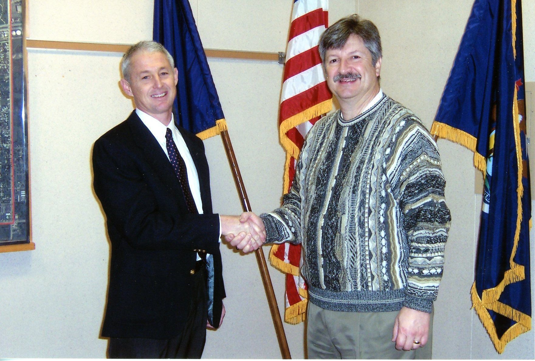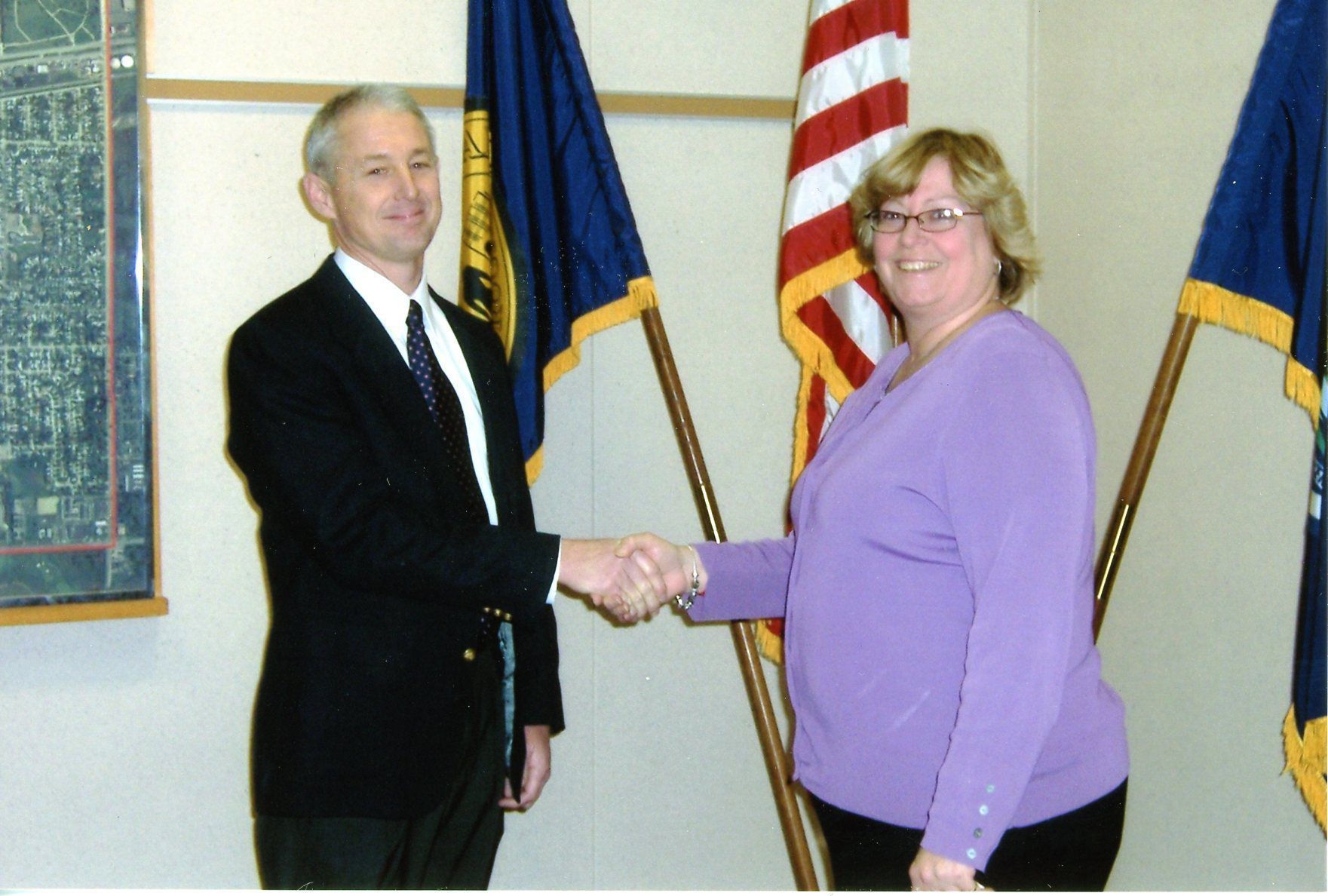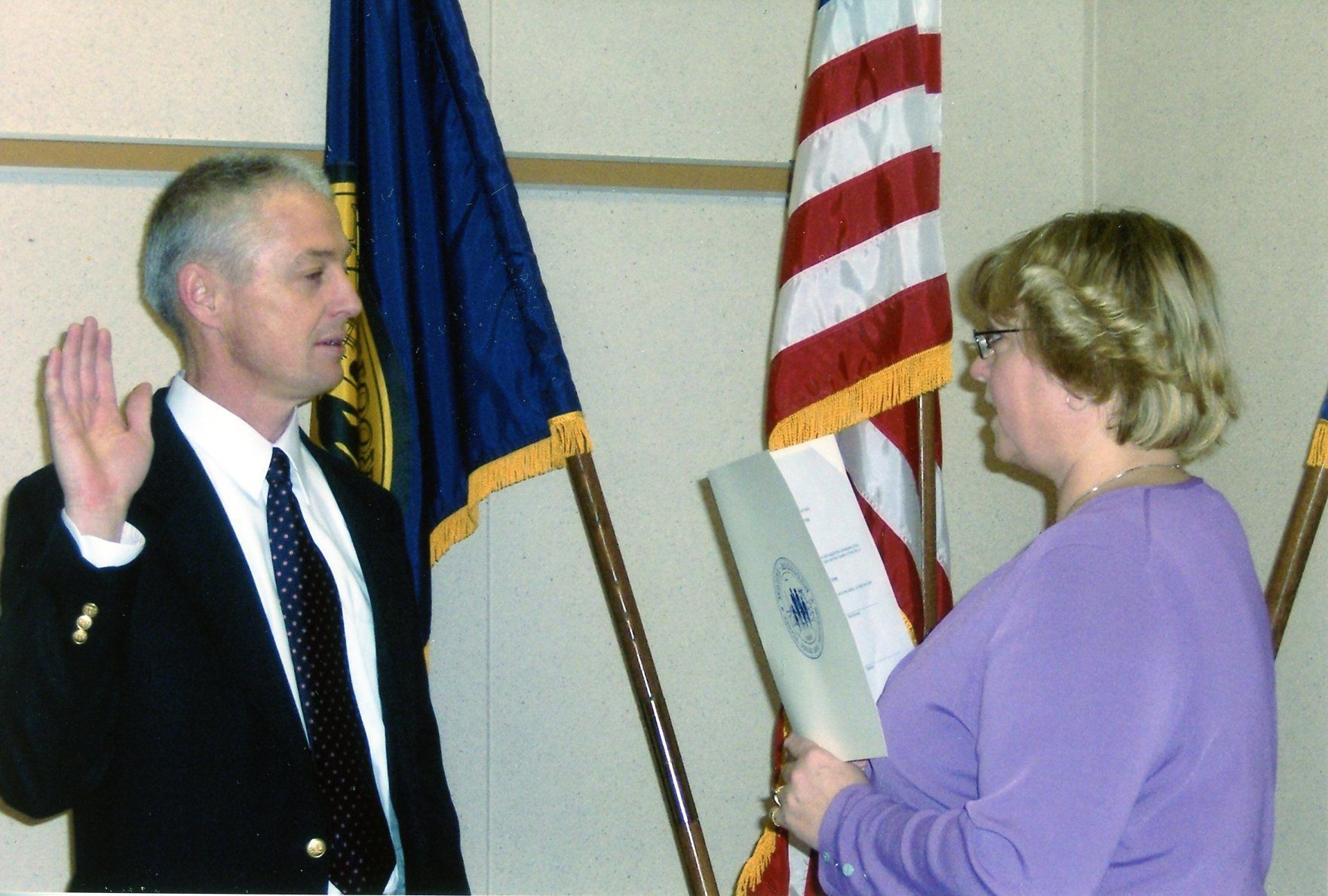 Tom McDonald getting sworn in by Wayne Clerk Mary Carney.