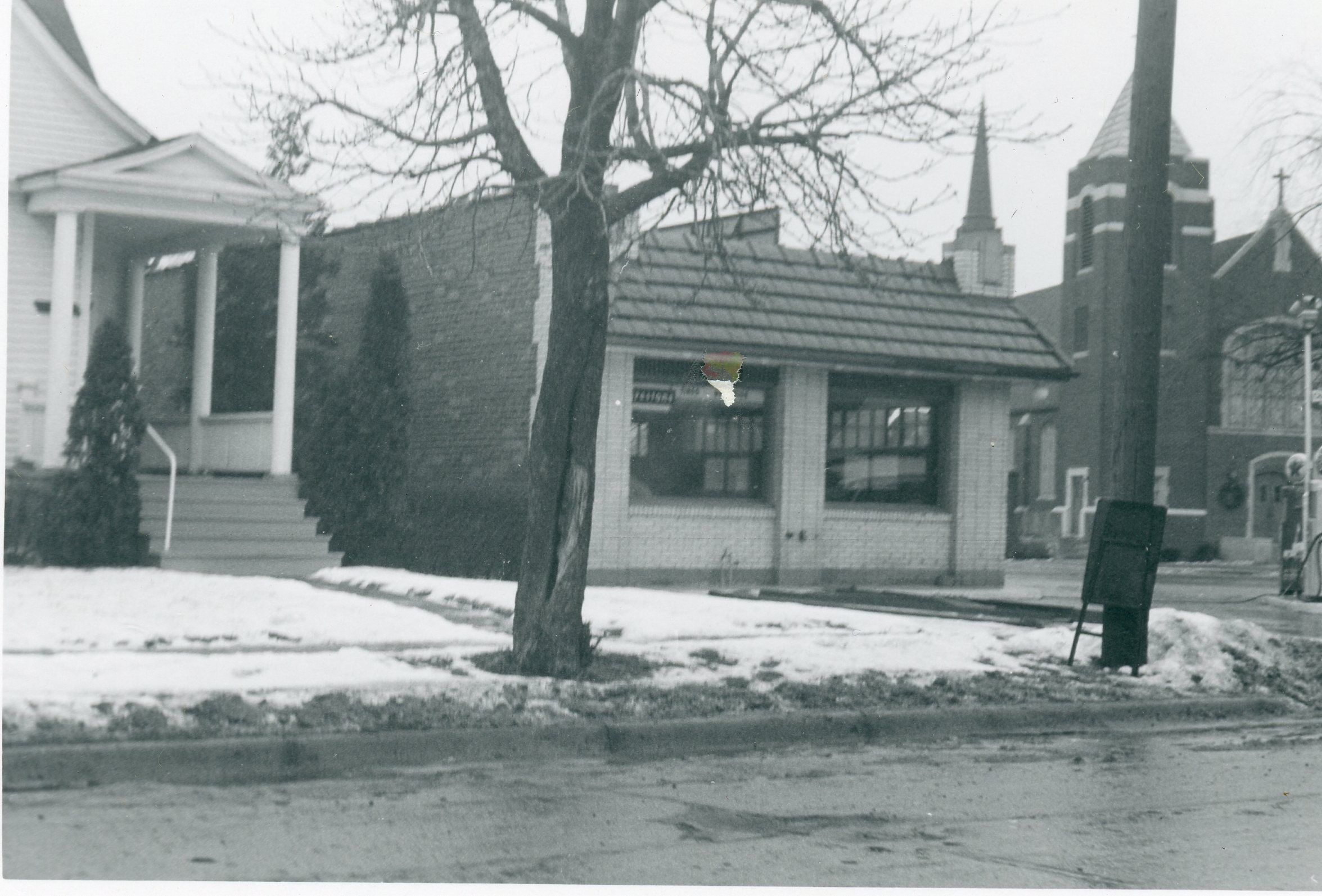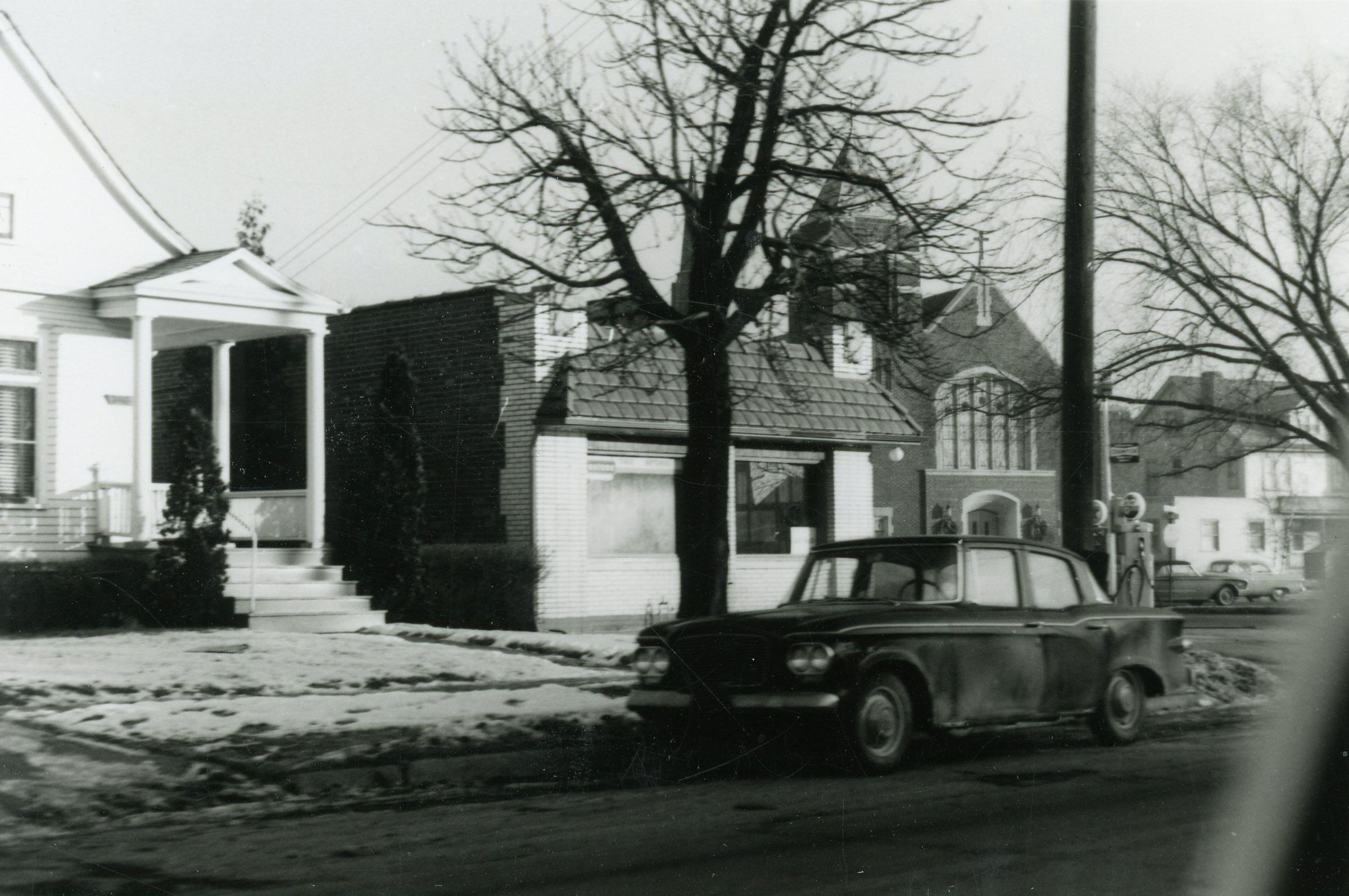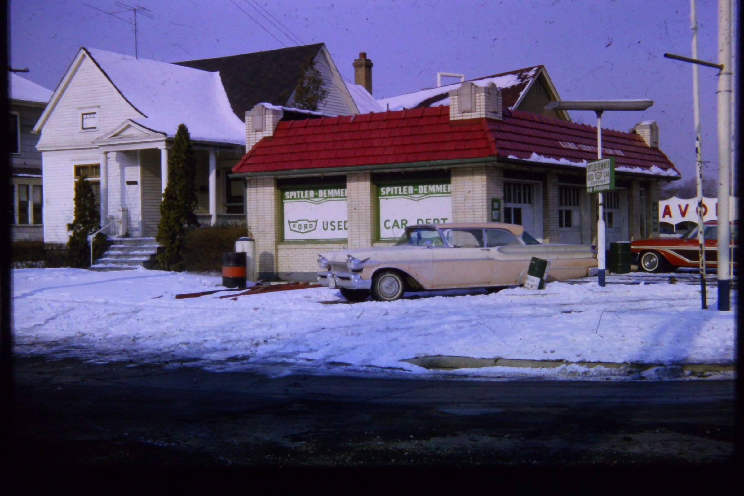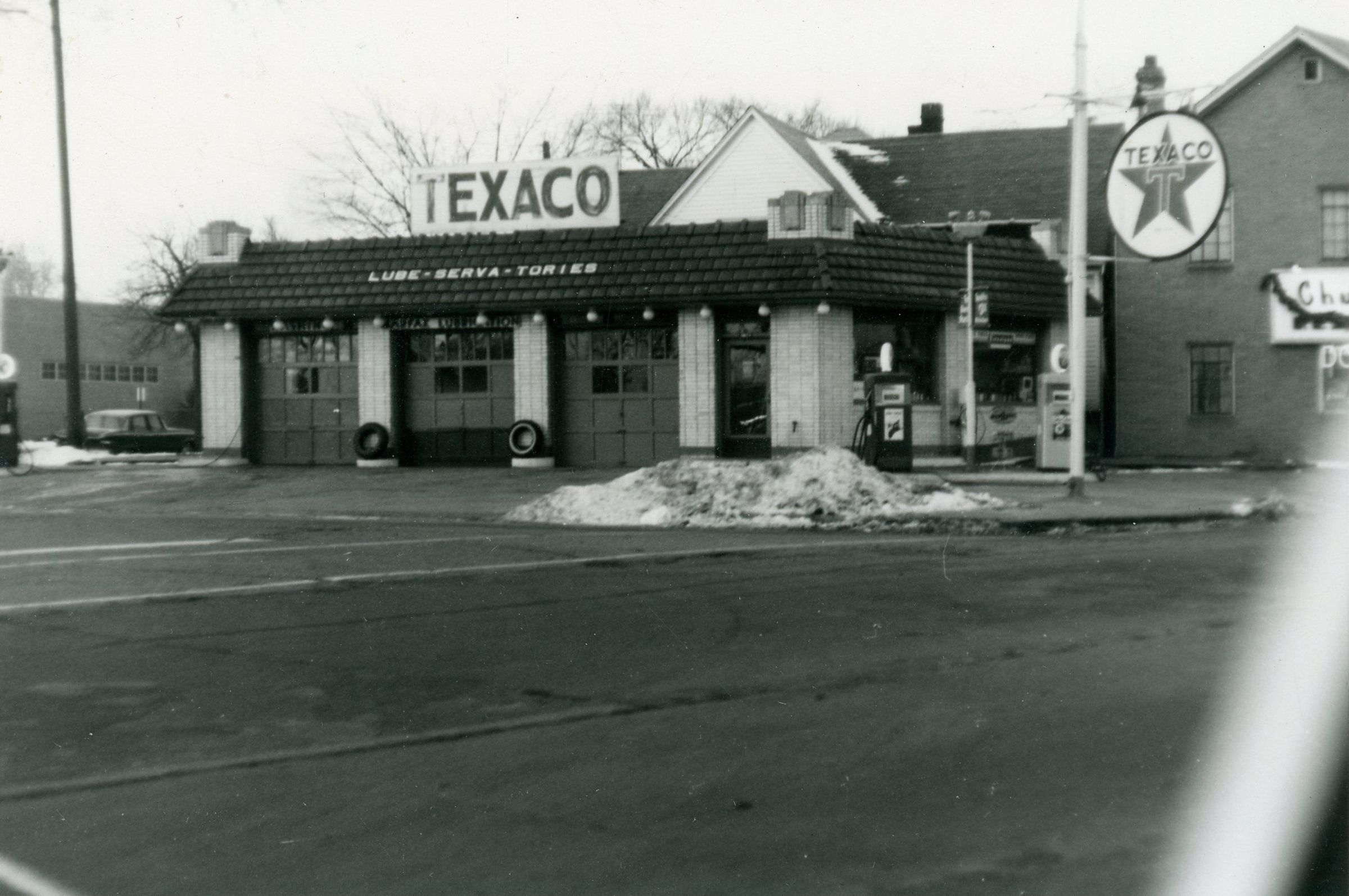 3608 Third Street, 3rd street. At narrow end of where Michigan, Main and Third Street connect. St. Marys Church in Background. Texaco gas service station, later Spitler Demmer used cars.Cataloged By