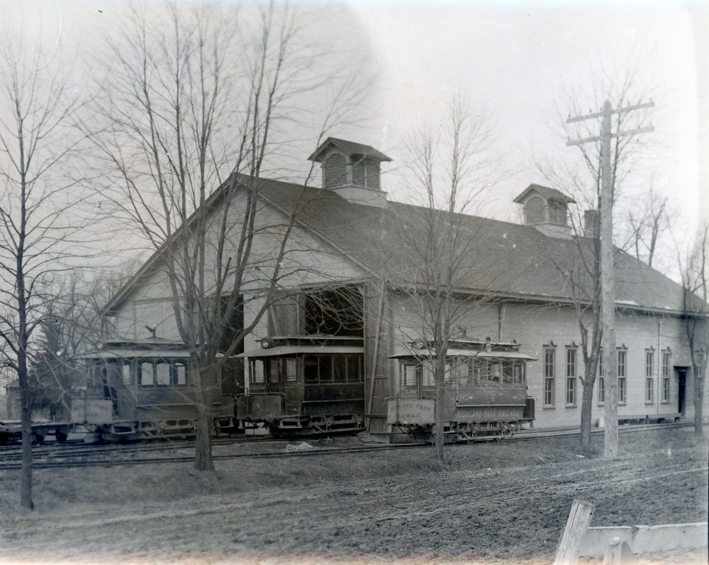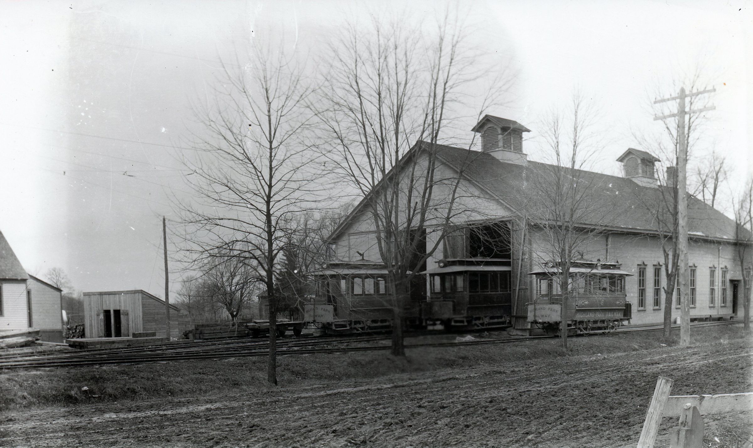 Highland Park Railway shed and cars. Dearborn.