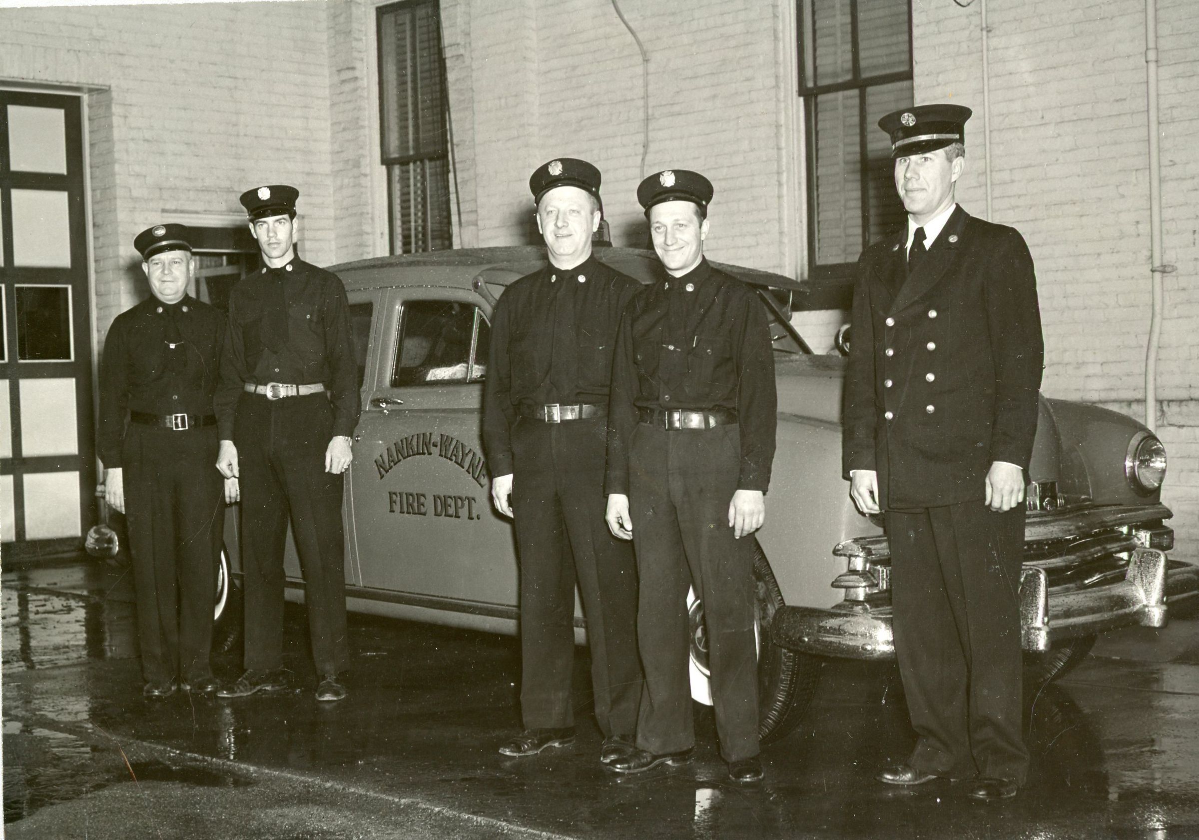 Nankin-Wayne Fire Department 1947. Dan Doletzky, Ralph Renton, Warren Robinson, Richard Hoffman, Chief Henry goudy