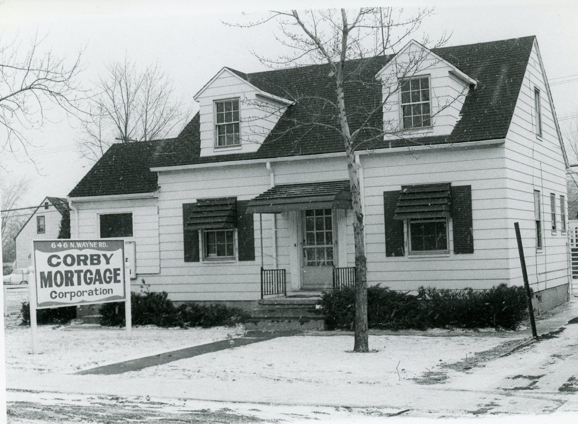 Corby Mortgage Corporation, 646 N. Wayne Road. Eagle Photo. Dec 13, 1968. Building still there as of 2024. SE corner Wayne and Rosslyn st.Cataloged By