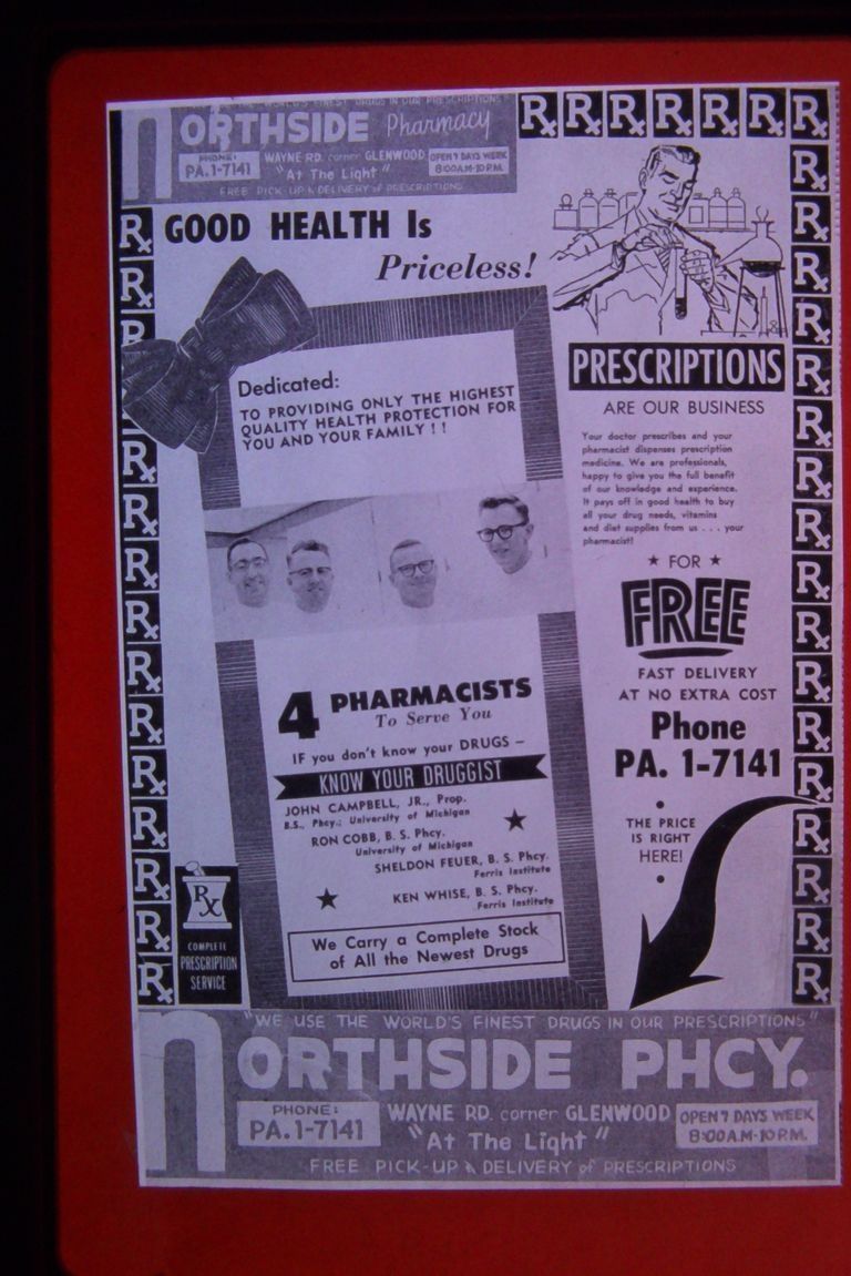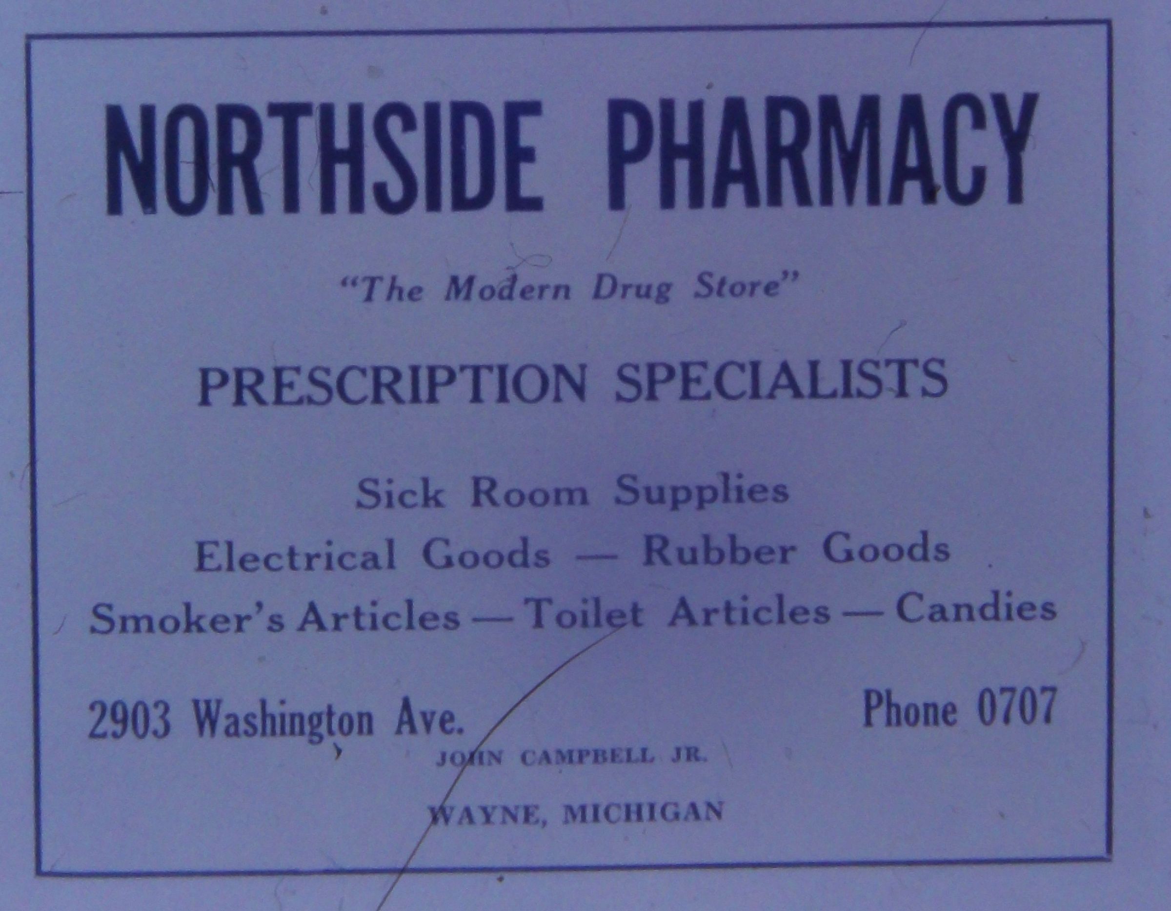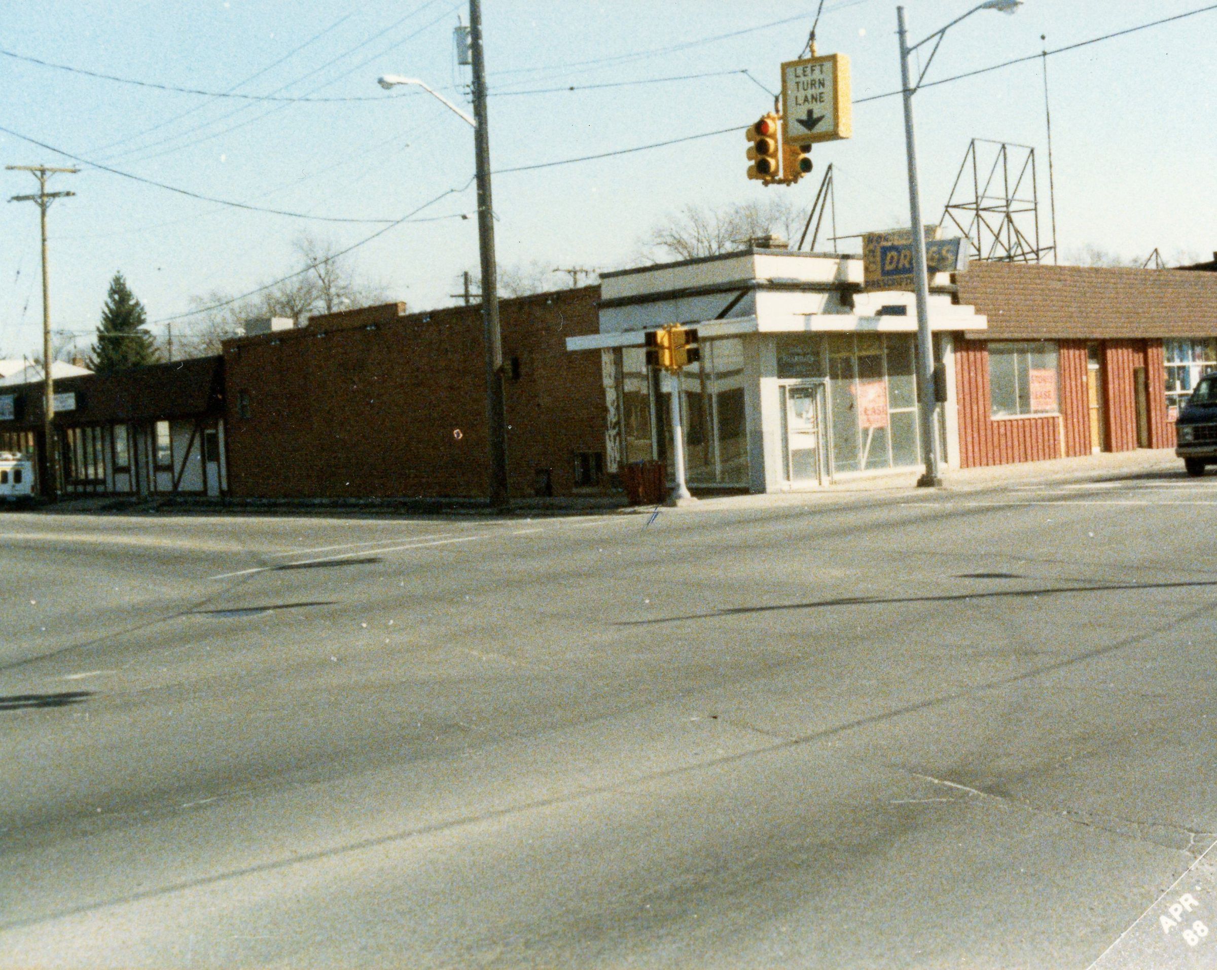 SE corner Wayne road and Glenwood. Northside Pharmacy, Wayne State Bank, North Cleaners.