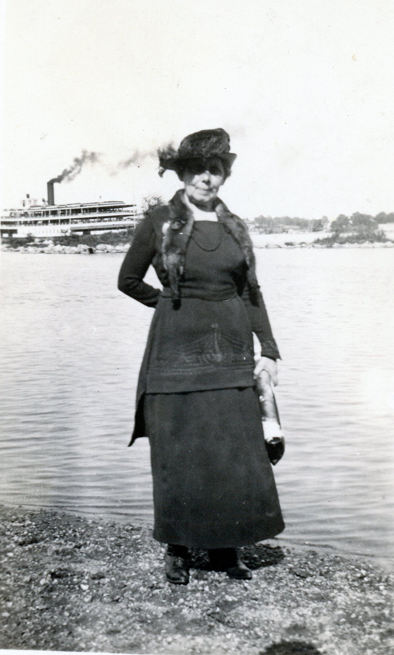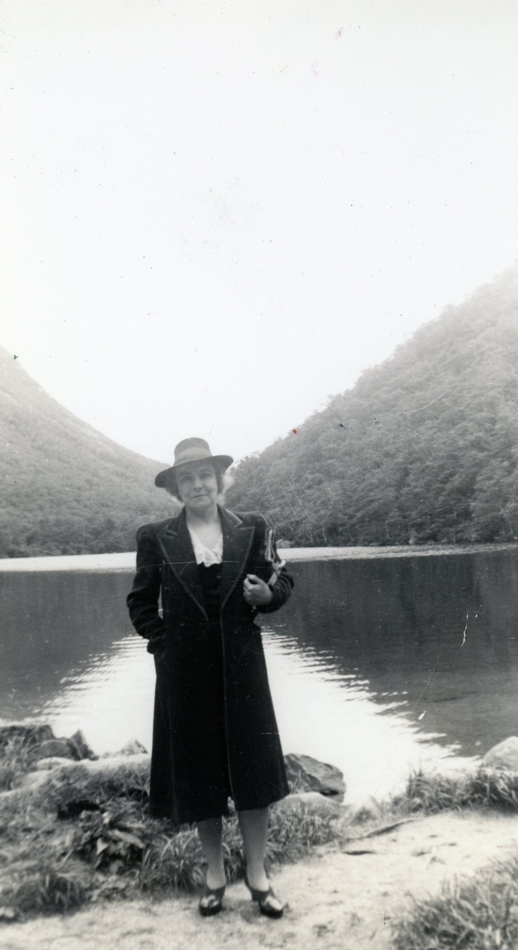 A field and body of water.