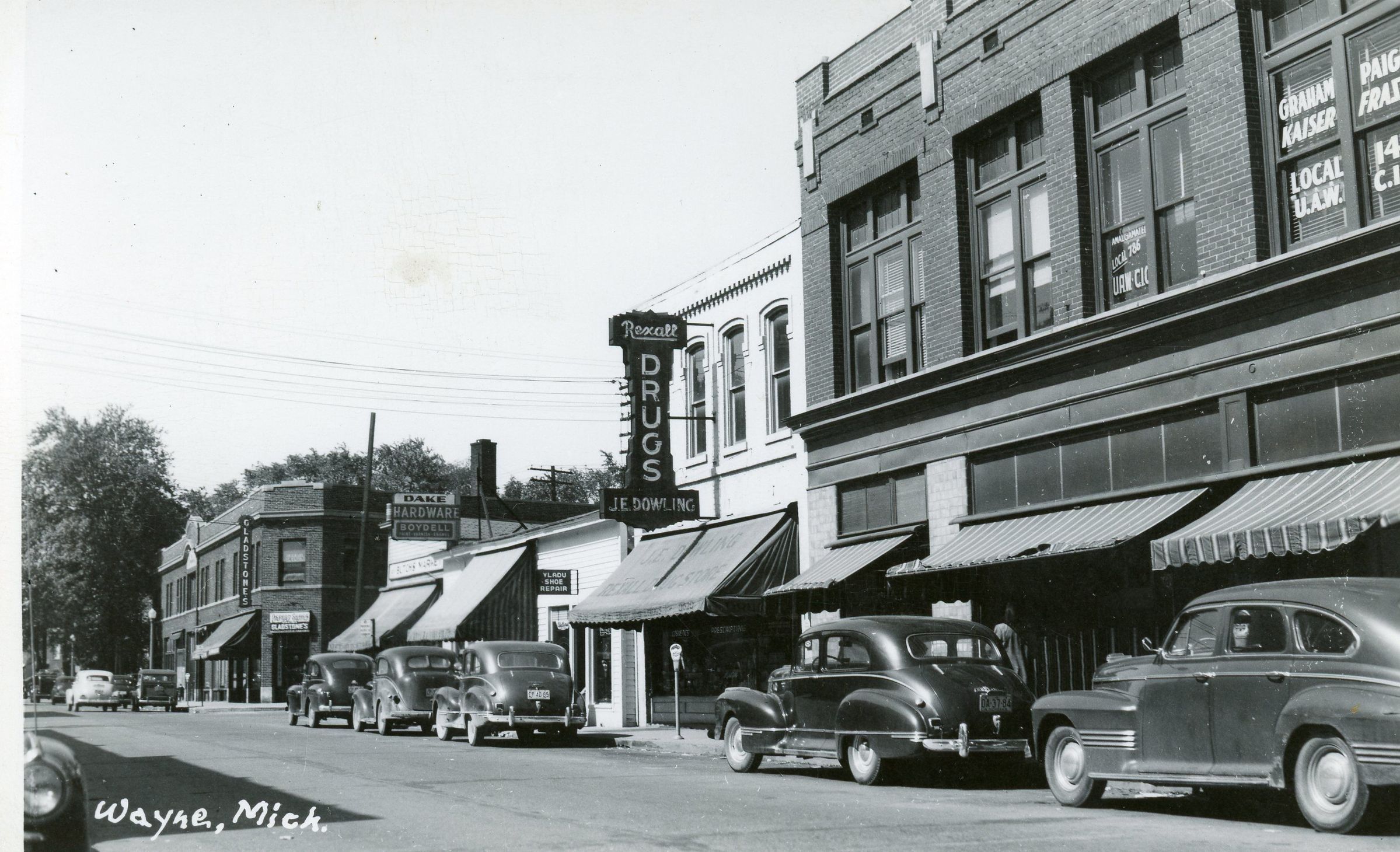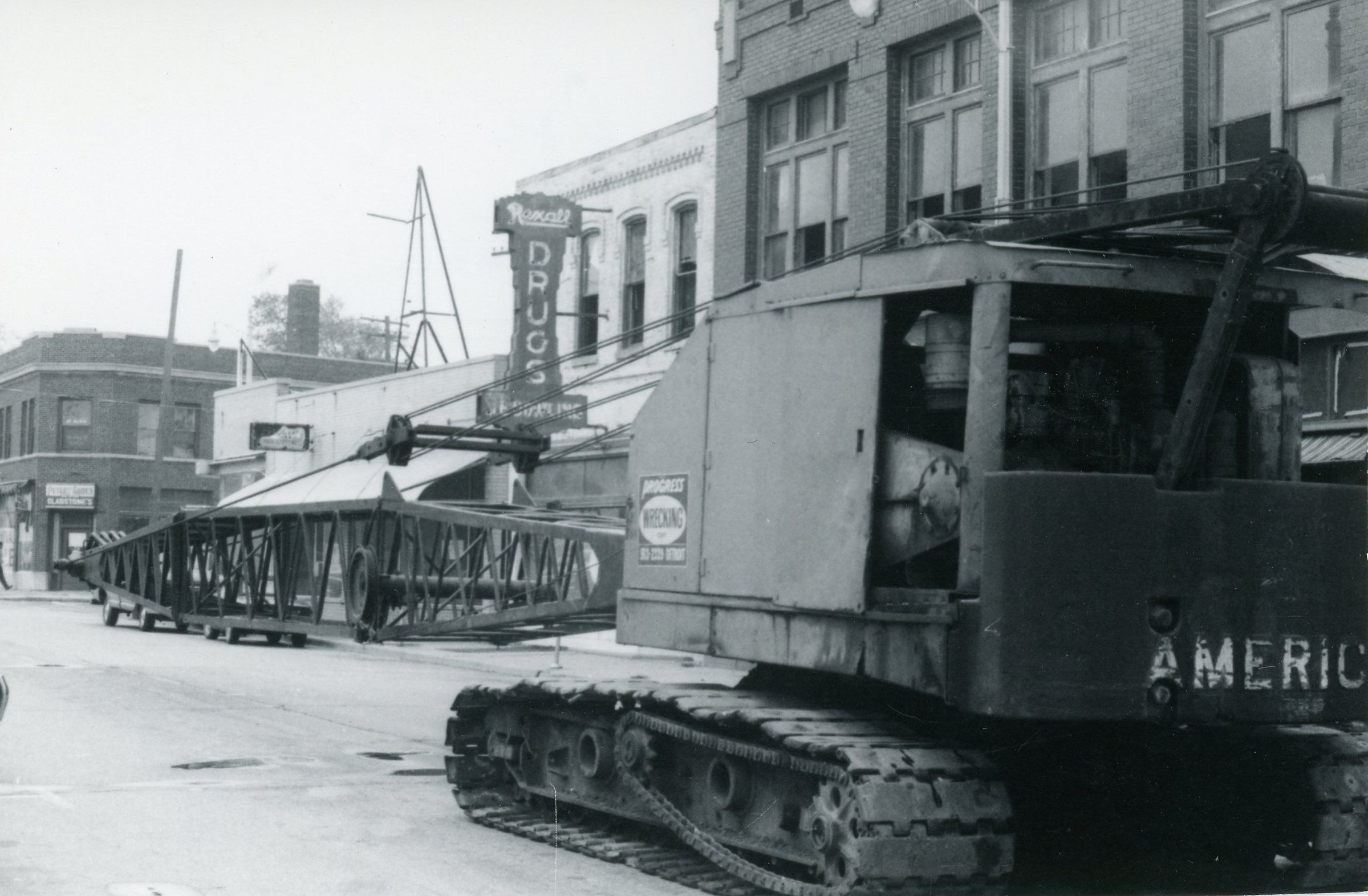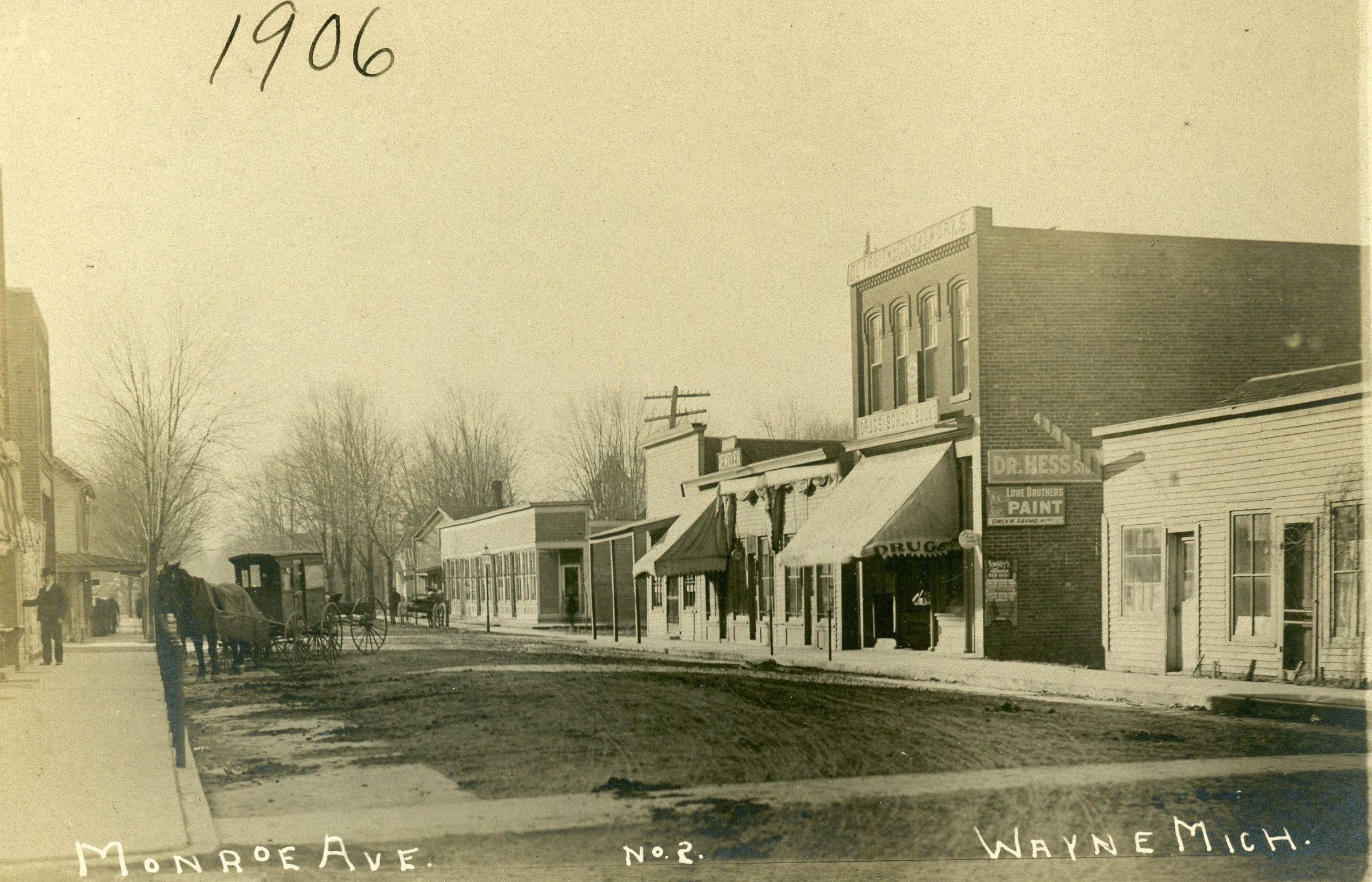 West side of Monroe between Main and Michigan, looking SW from Michigan. Hoops block would later be built at right side of picture.Cataloged By