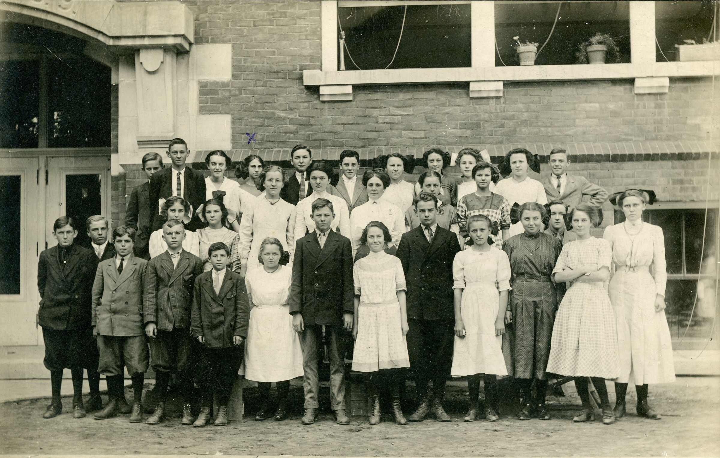 Roosevelt School Class 1945. Wilmer Butler, Selma Berger, Gladys Smith, Isabell Moore, Bertha Templen, Marion Petersen, Clifford Ellis, Ed Smith, Ellen Smith, Bessie Rilley, Velma Clark, Ellen Veal, Georgia Hilliard, Vadah Billings, Florence Whitney, Ed Hubbard, Beatrice Adams, Hazen Walker, Douglas Langlois, Floyd Rolf.Cataloged By