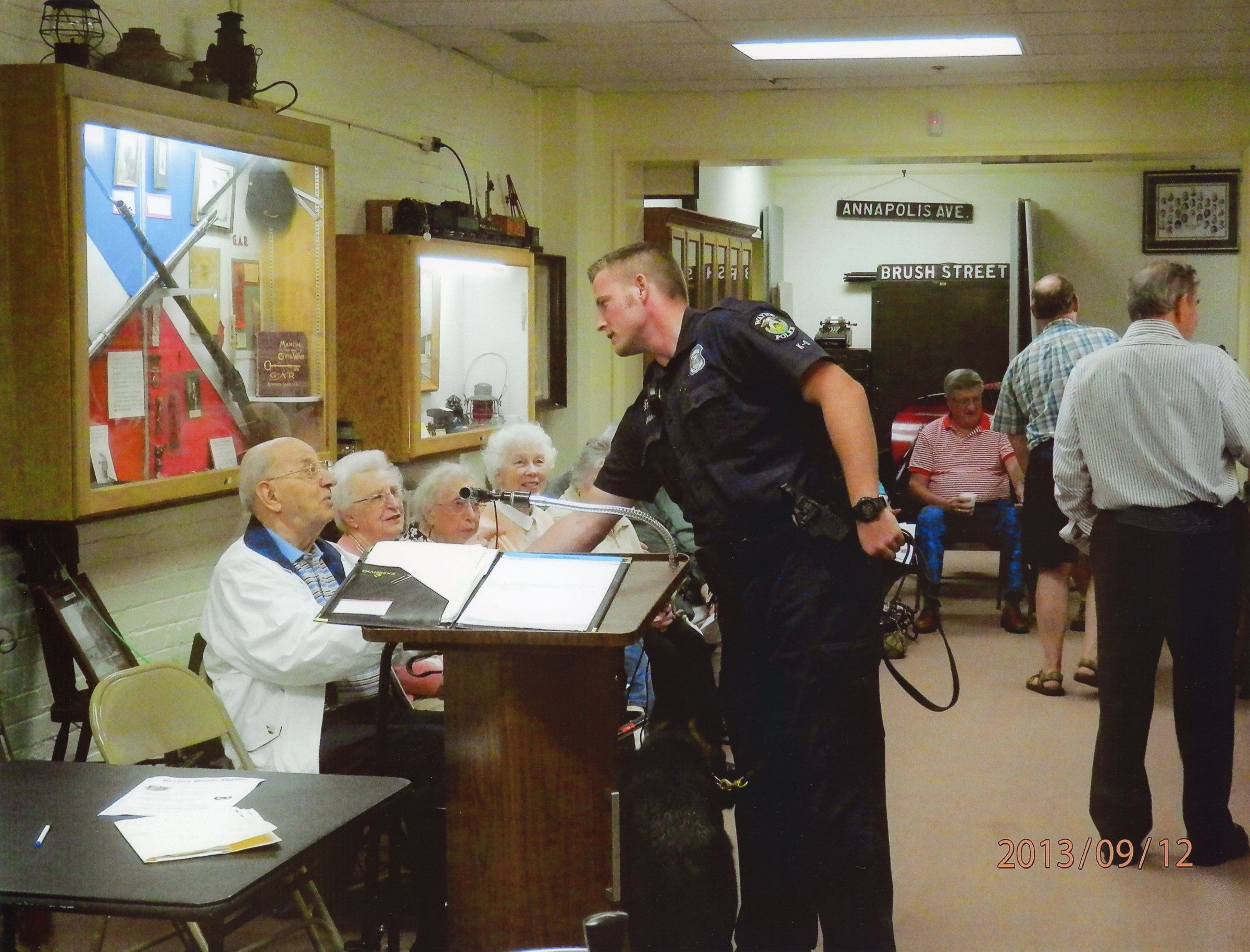 K-9 Unit Wayne Police Officer and dog meeting citizens on Sept 9,2013 in Wayne Historical Museum.Cataloged By
