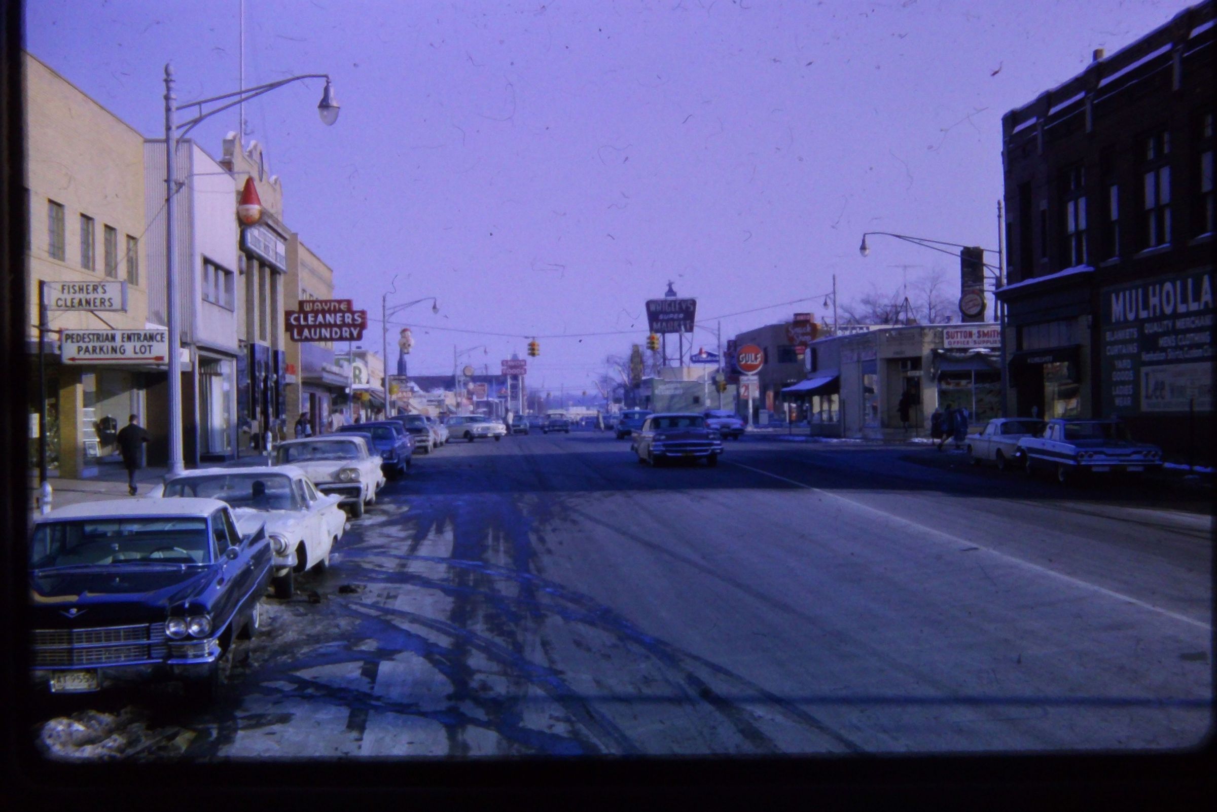 Michigan Avenue looking East from Biddle. Bank Block on left, Wayne road, Monroe and Mulhollands on Right. Pre-Urban Renewal.
