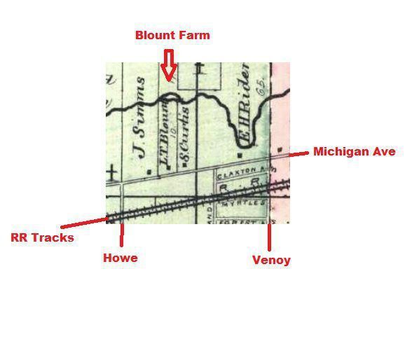 Blount Farm - North side Michigan Avenue, 1/4 mile east of Howe Road. Milking Cows. Located around the address of 33540 Michigan.