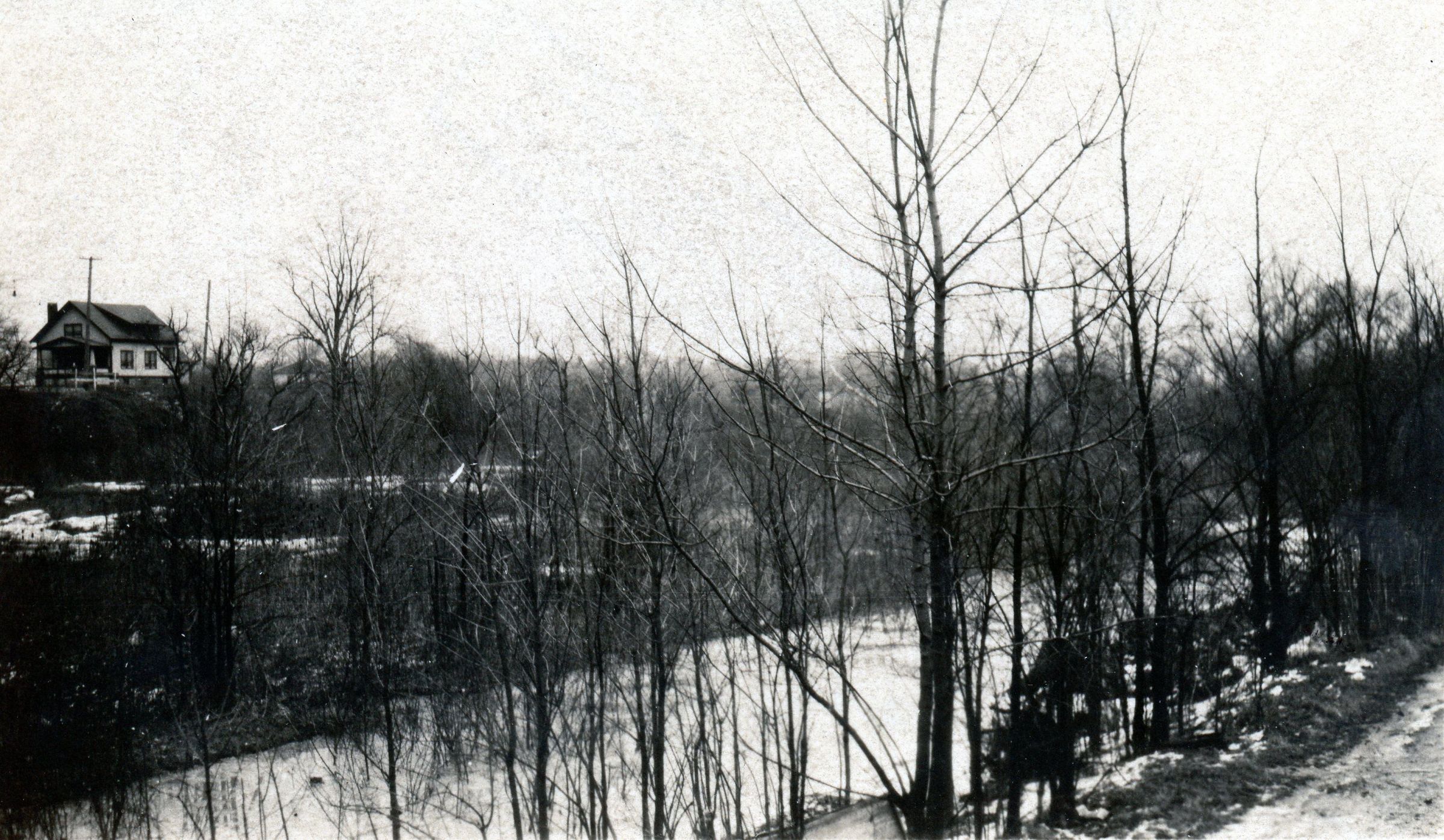 Rouge River at Sims and 3rd street. hall house on 3rd street visible