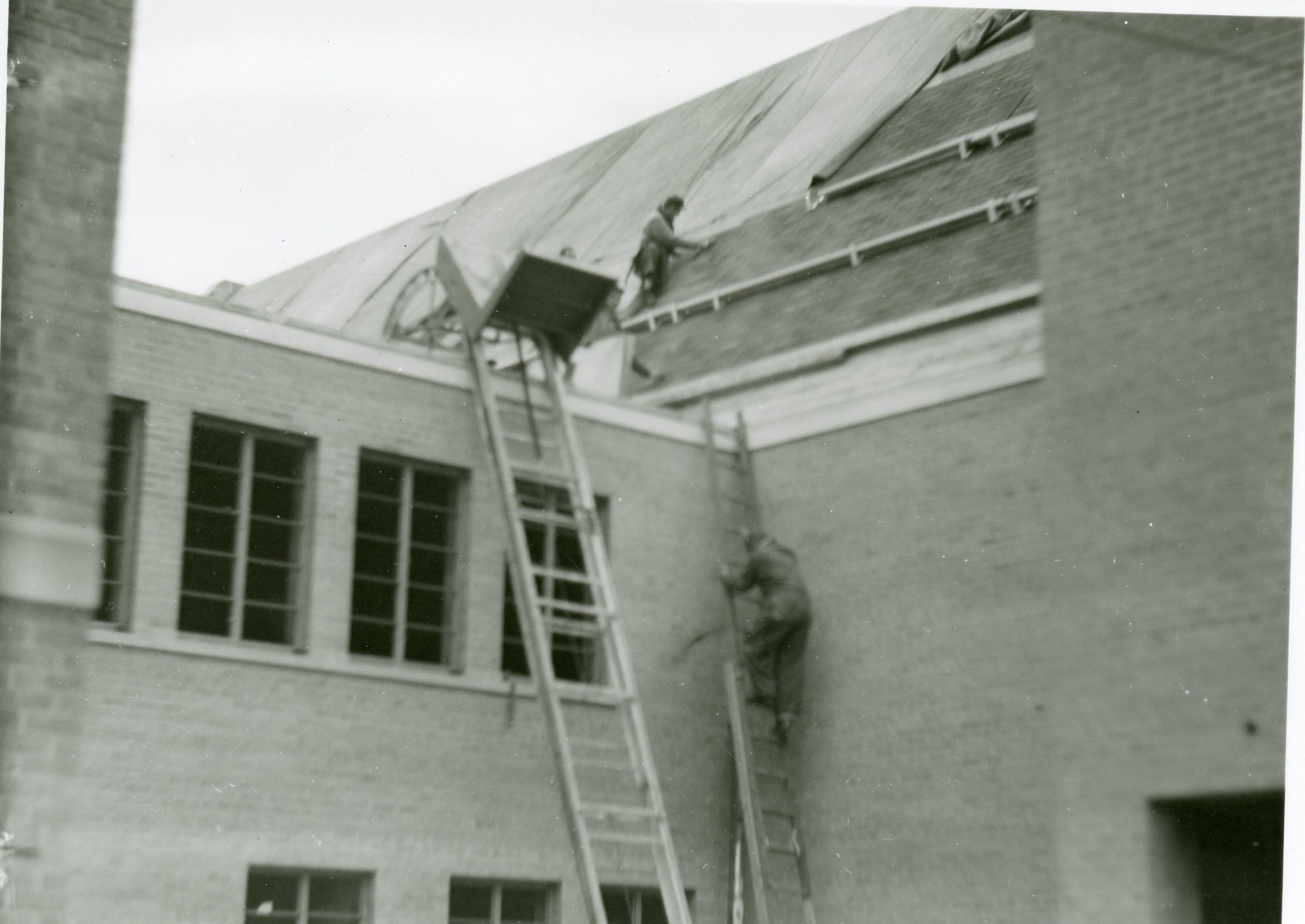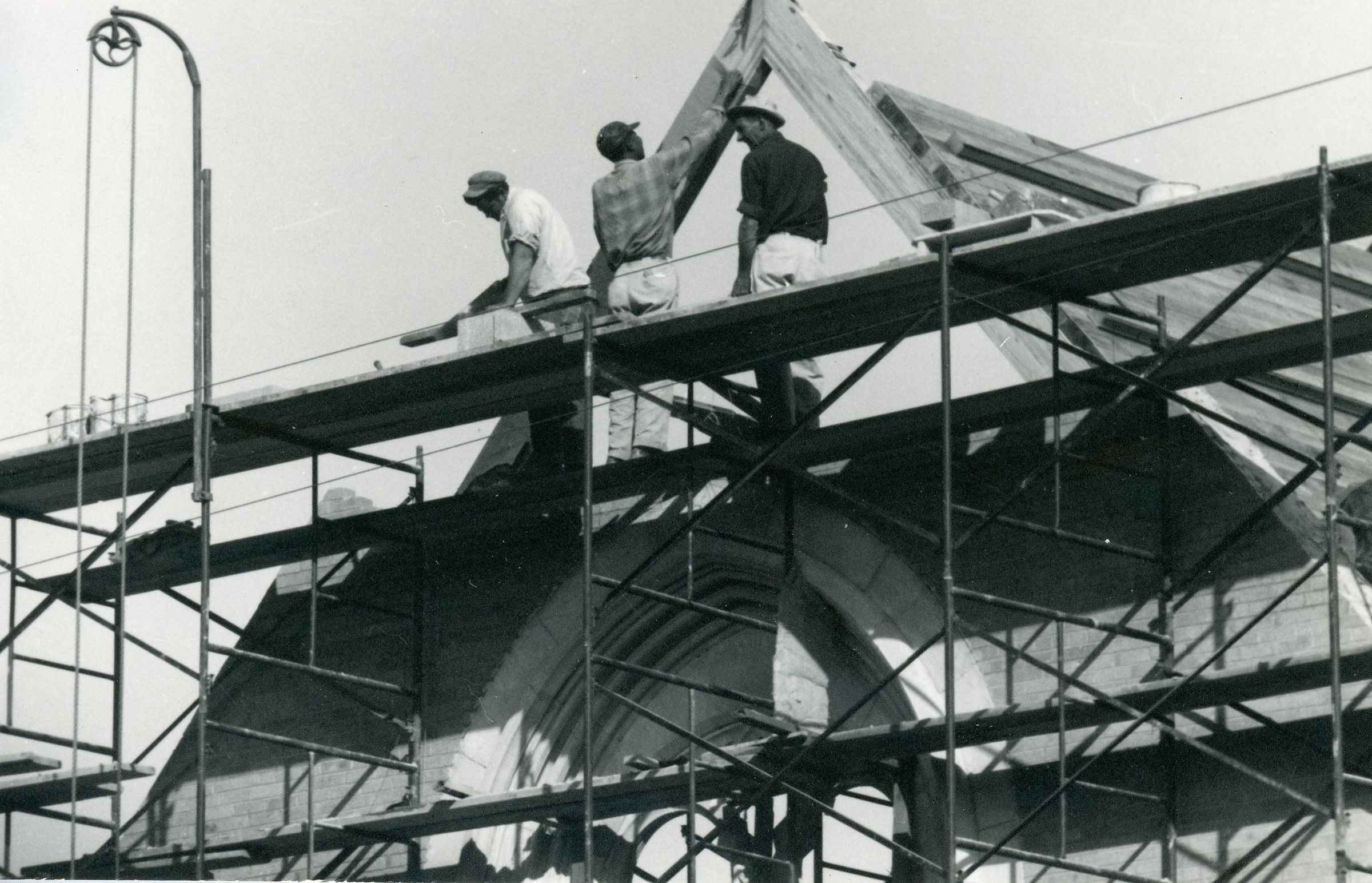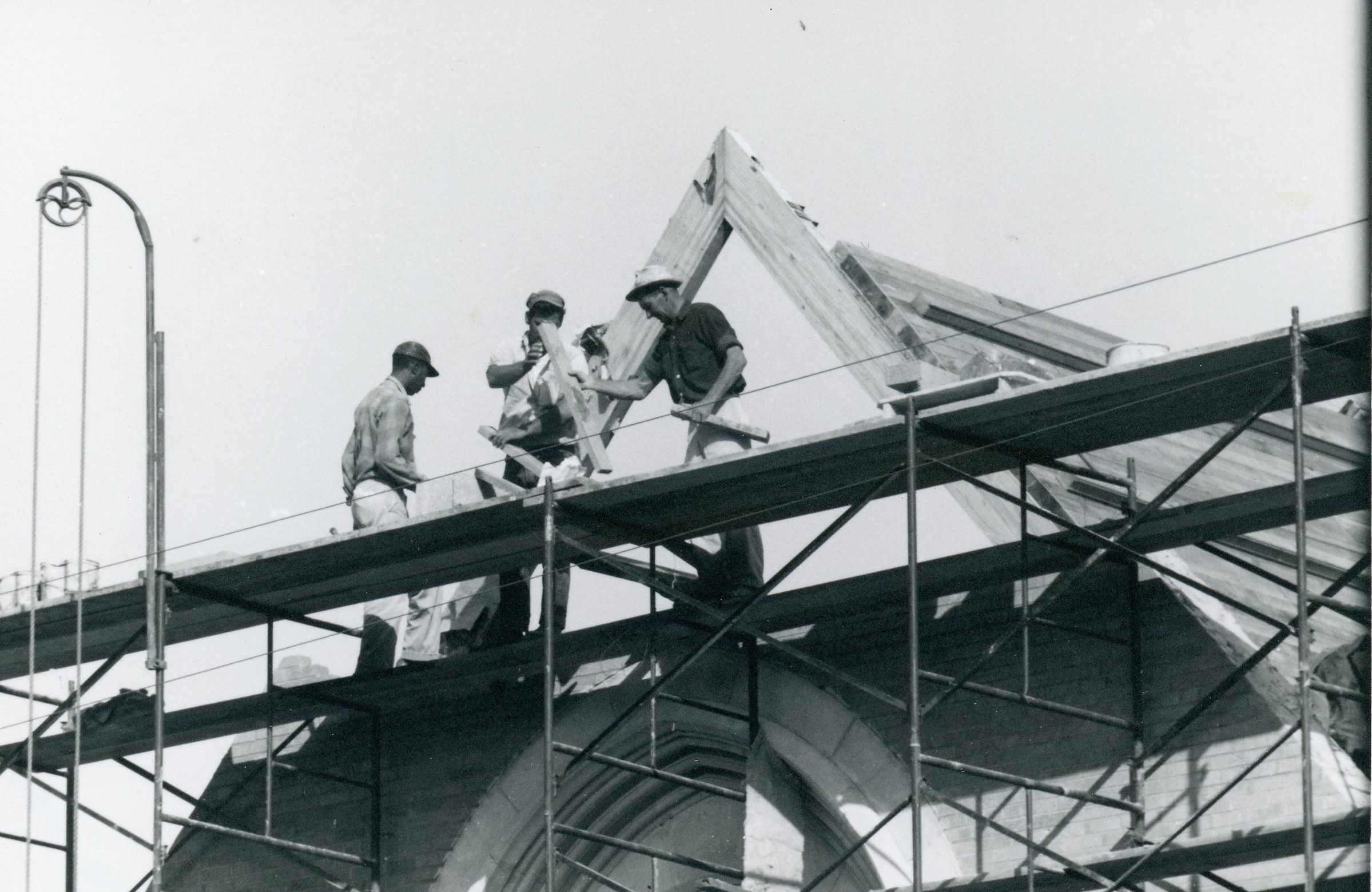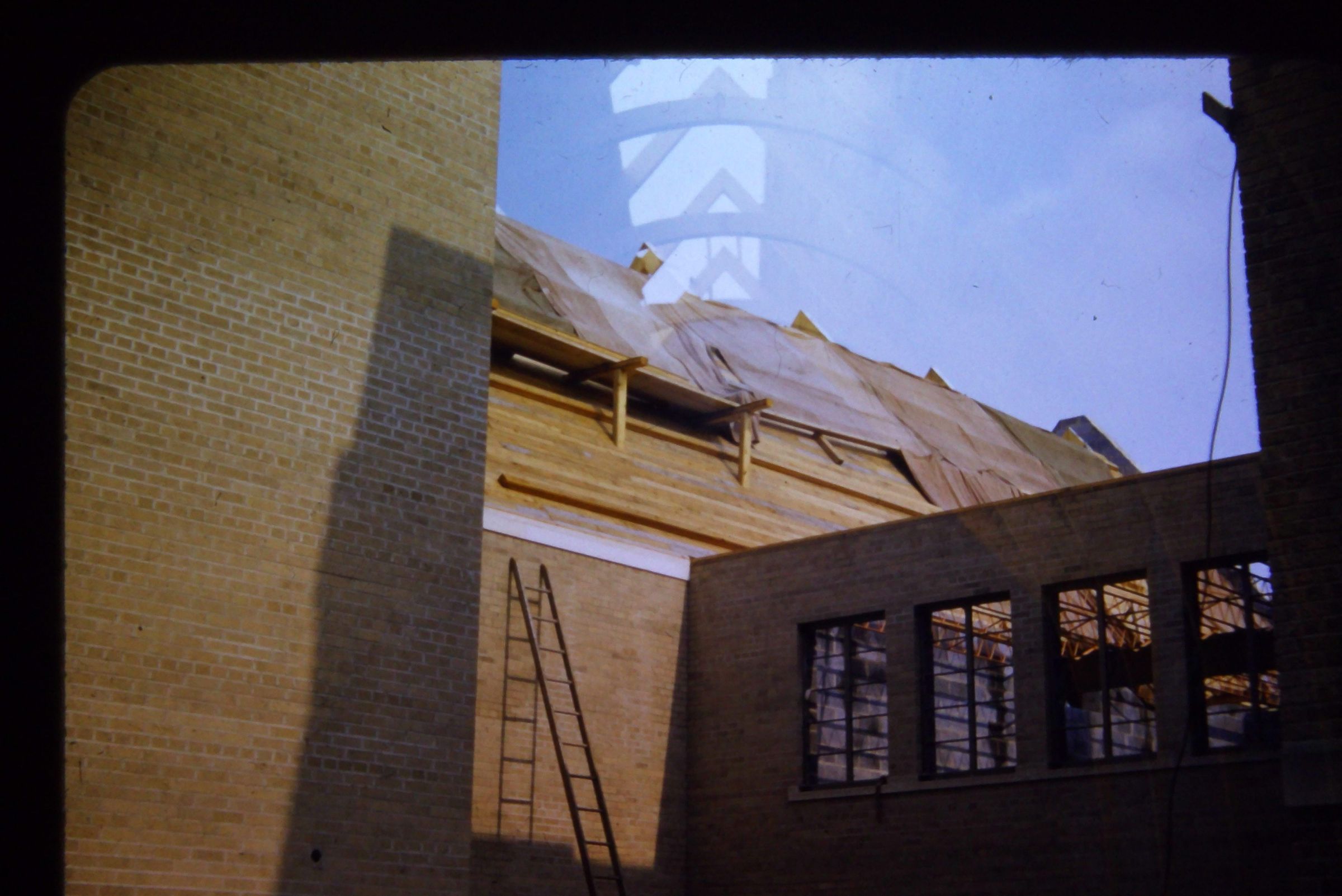 Church Construction- Roofing. Photos taken in 1956 by Dr. Parker