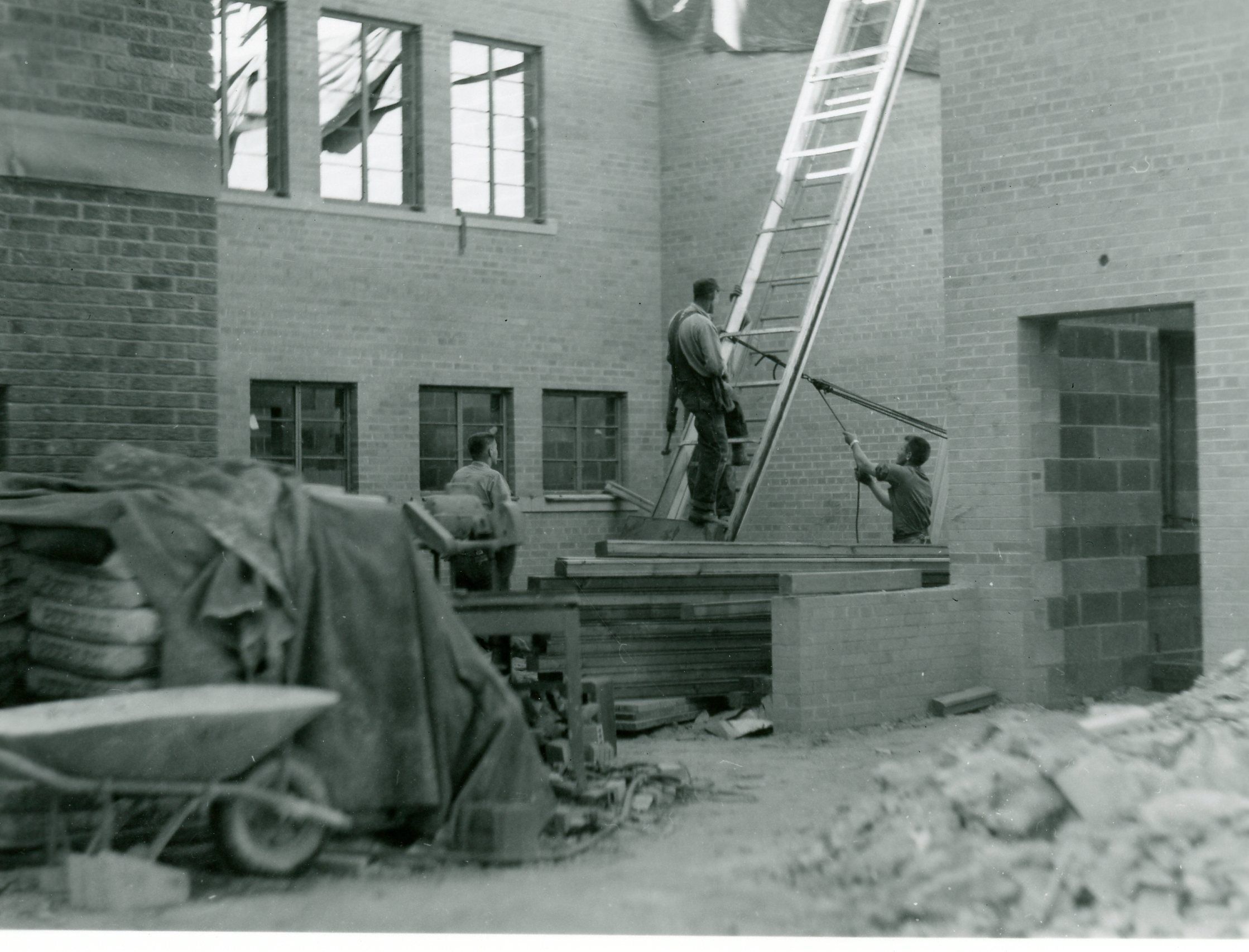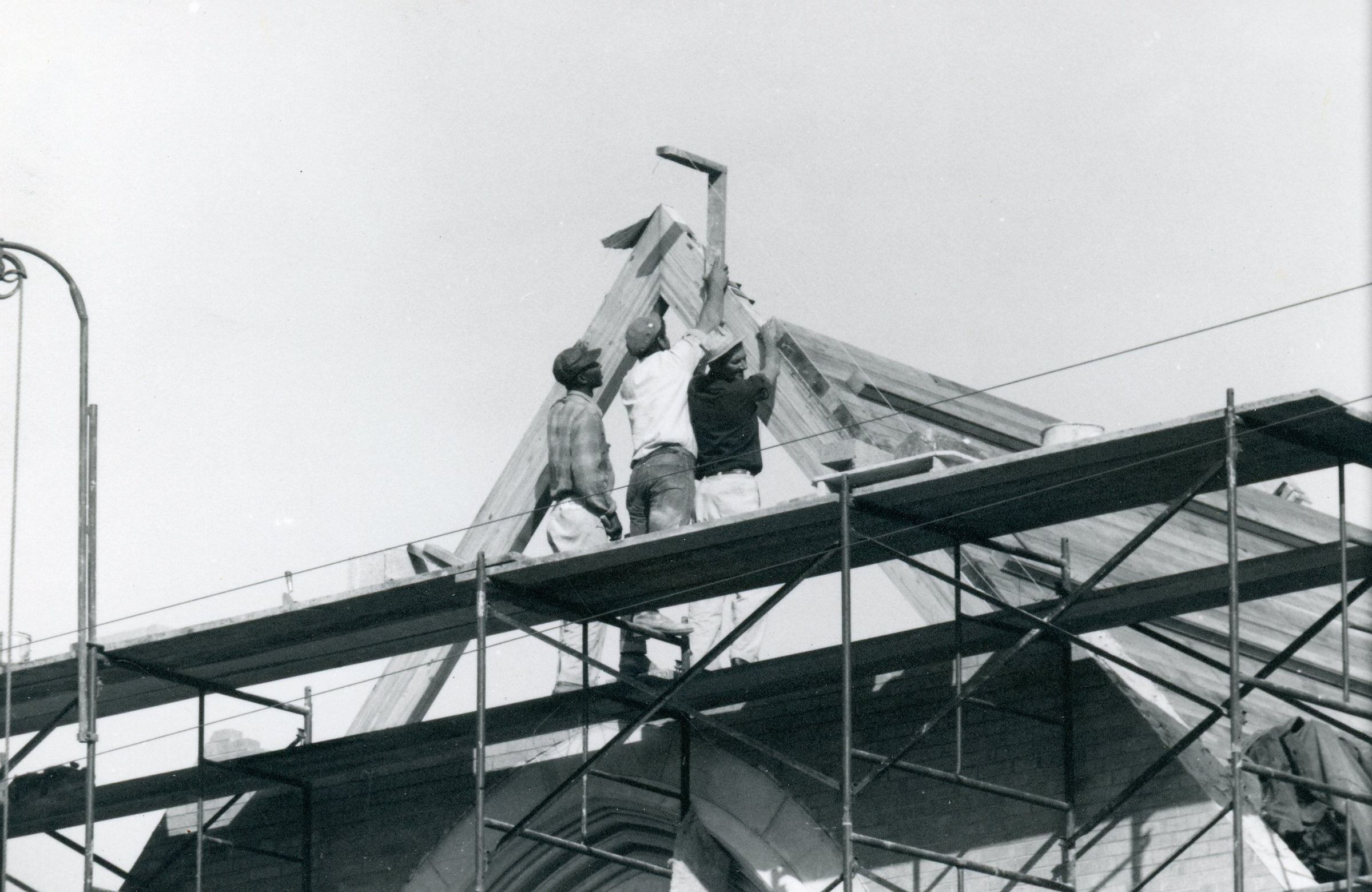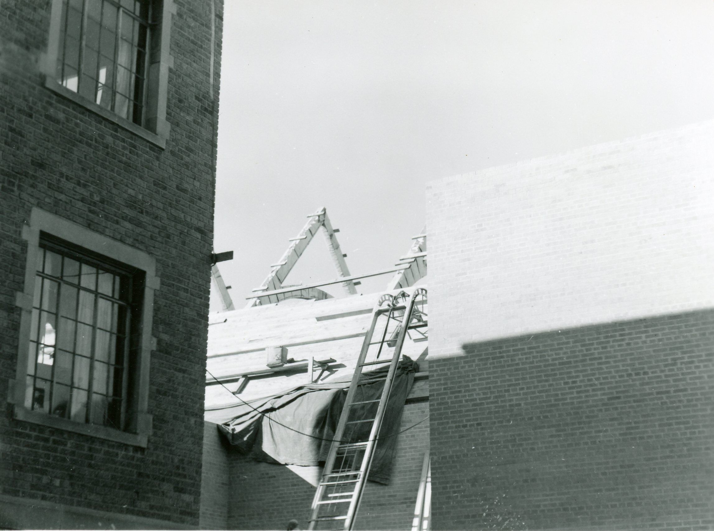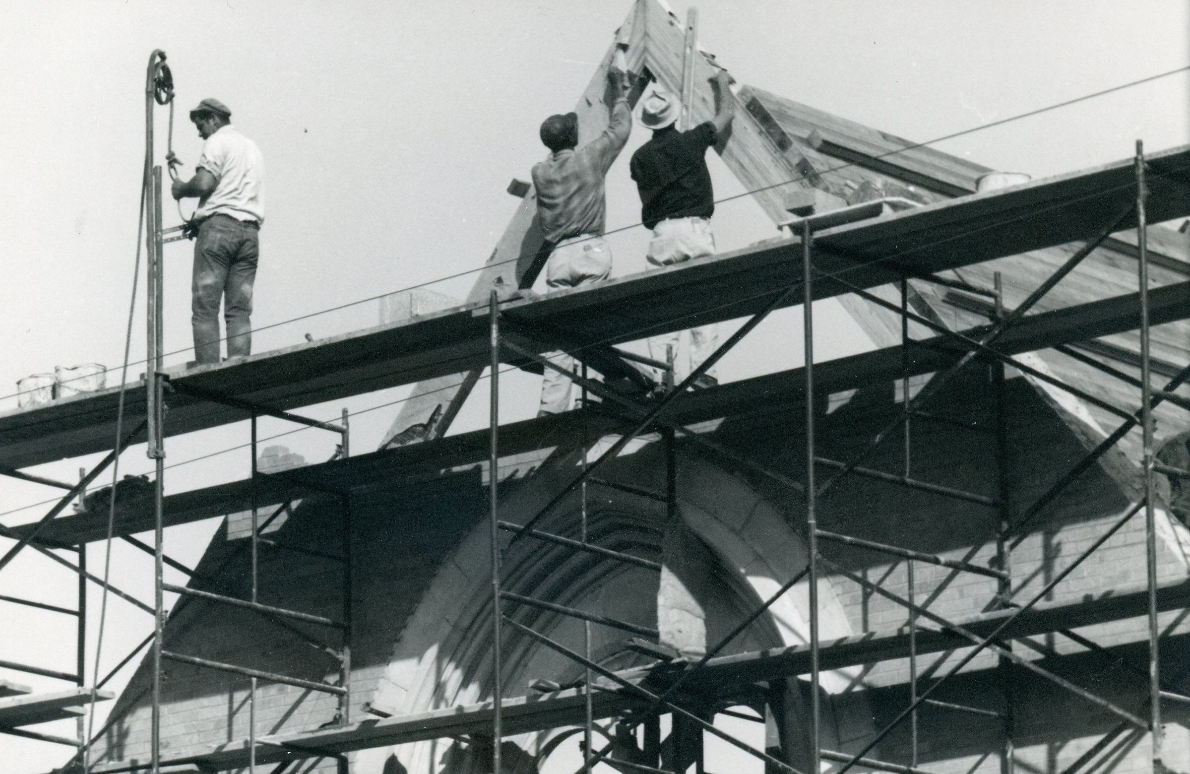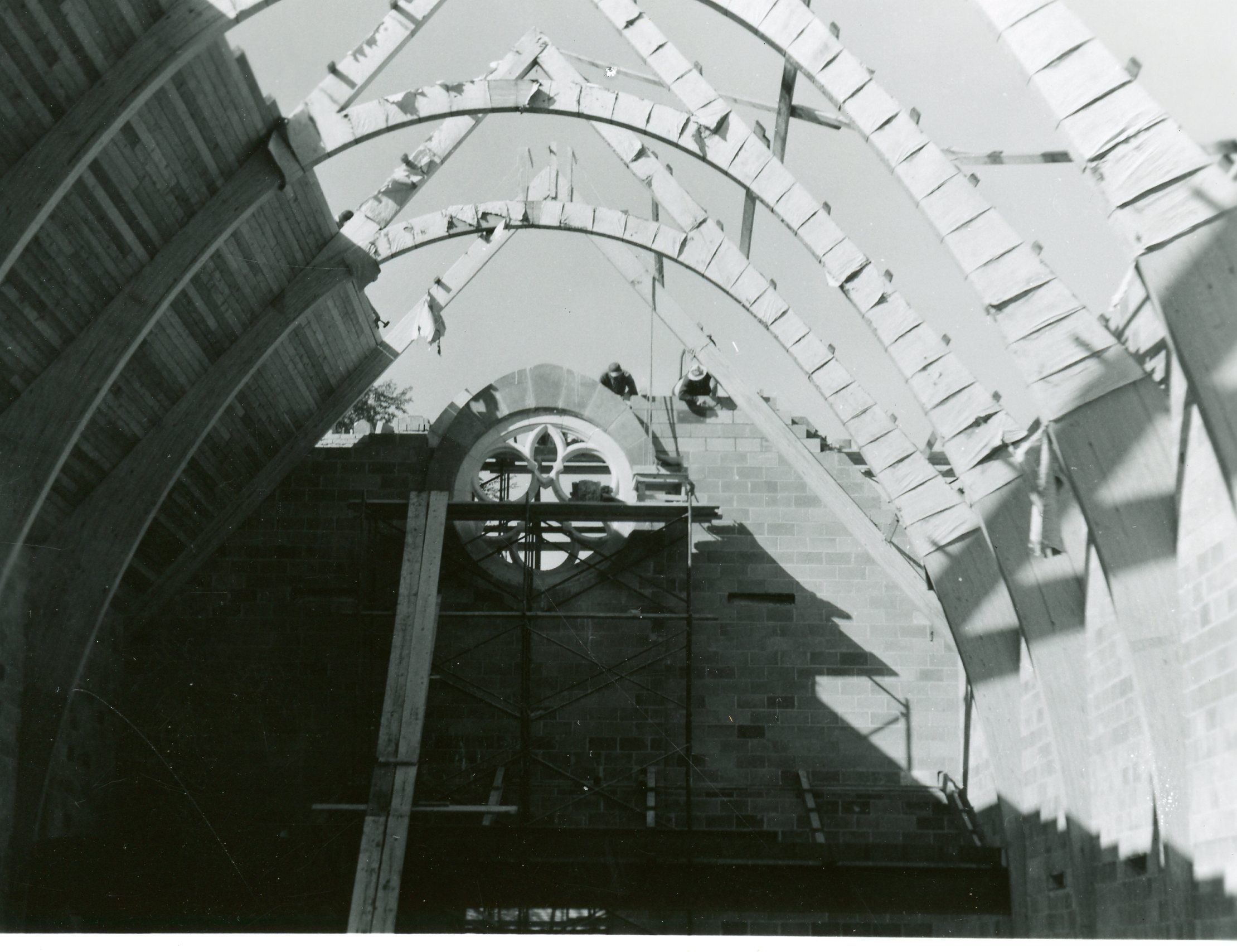 Church Construction- Roofing. Photos taken in 1956 by Dr. Parker