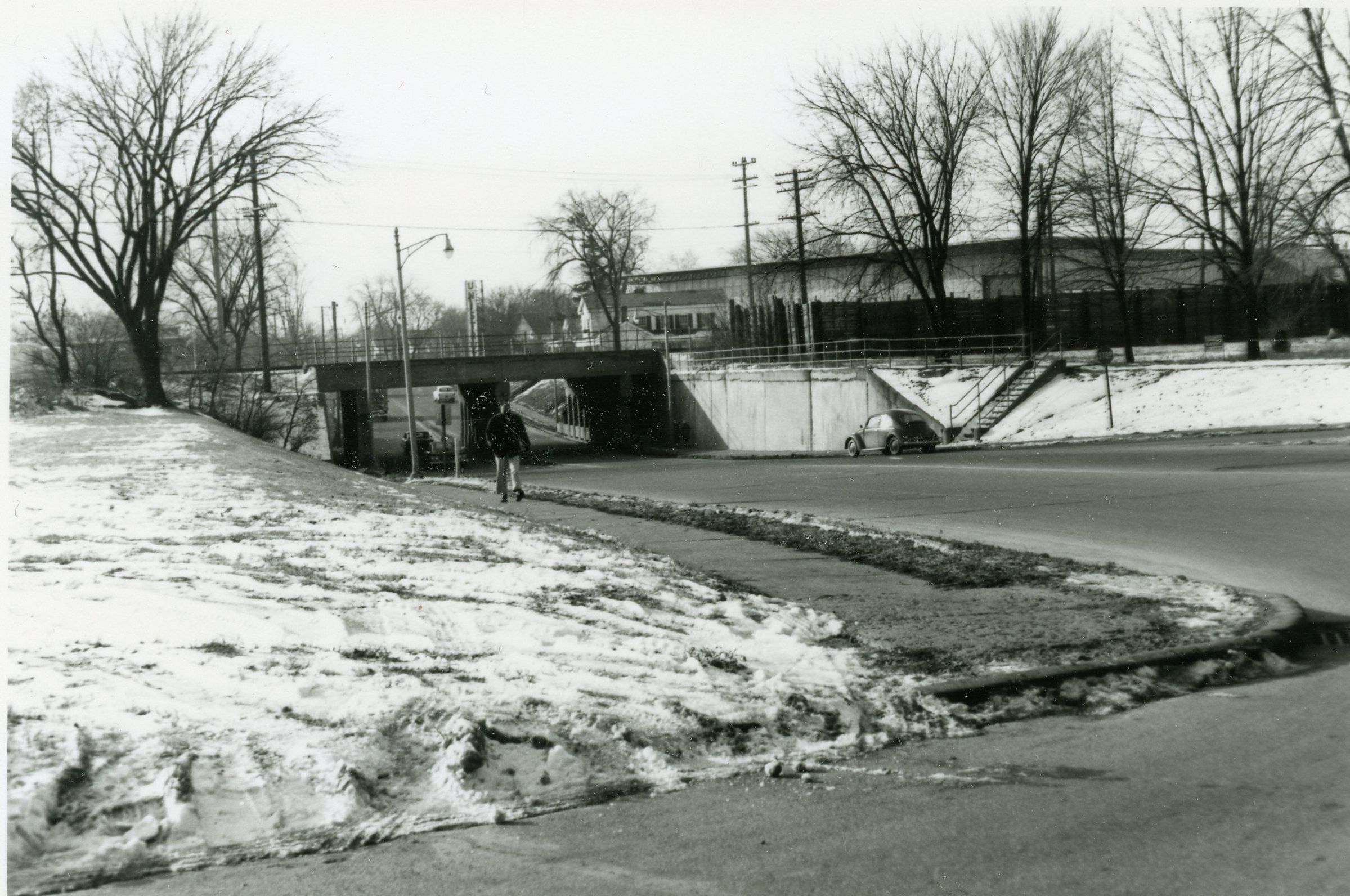 SE corner Brush and Monroe, looking South from Brush. Monroe St./Wayne road underpass.