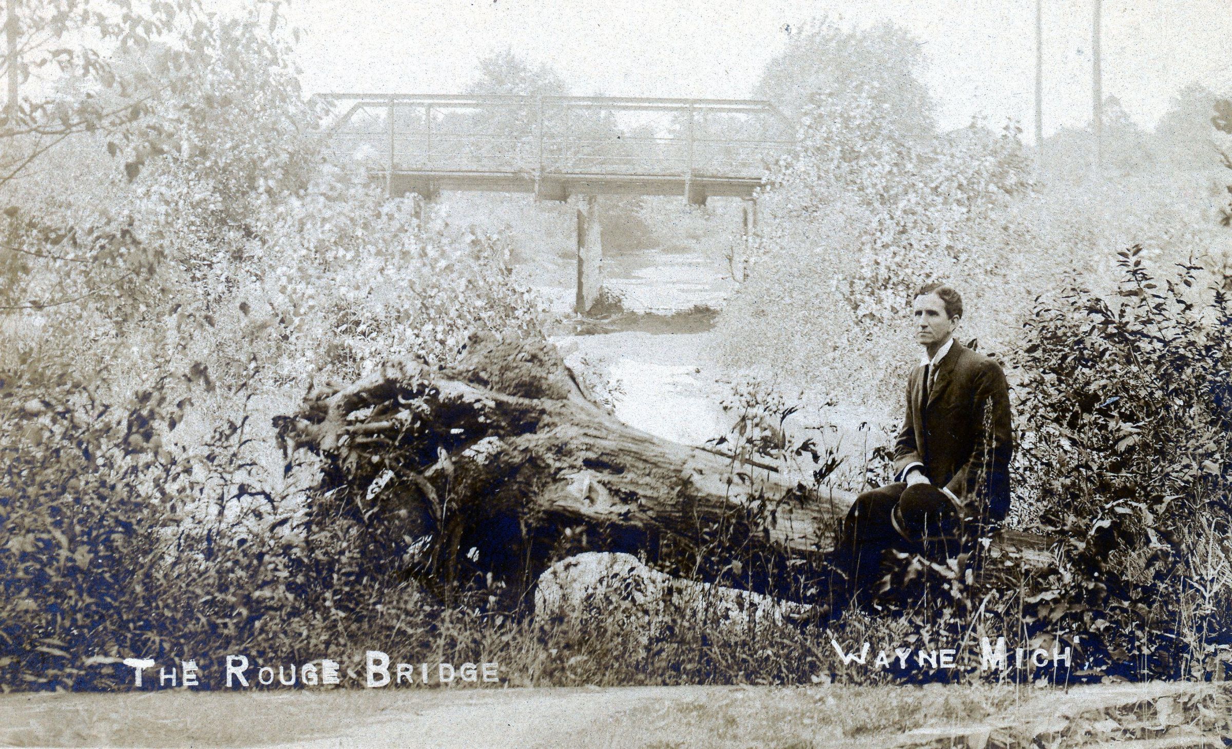 Owen Raymo at the Wayne road Bridge over Rouge River. 1906