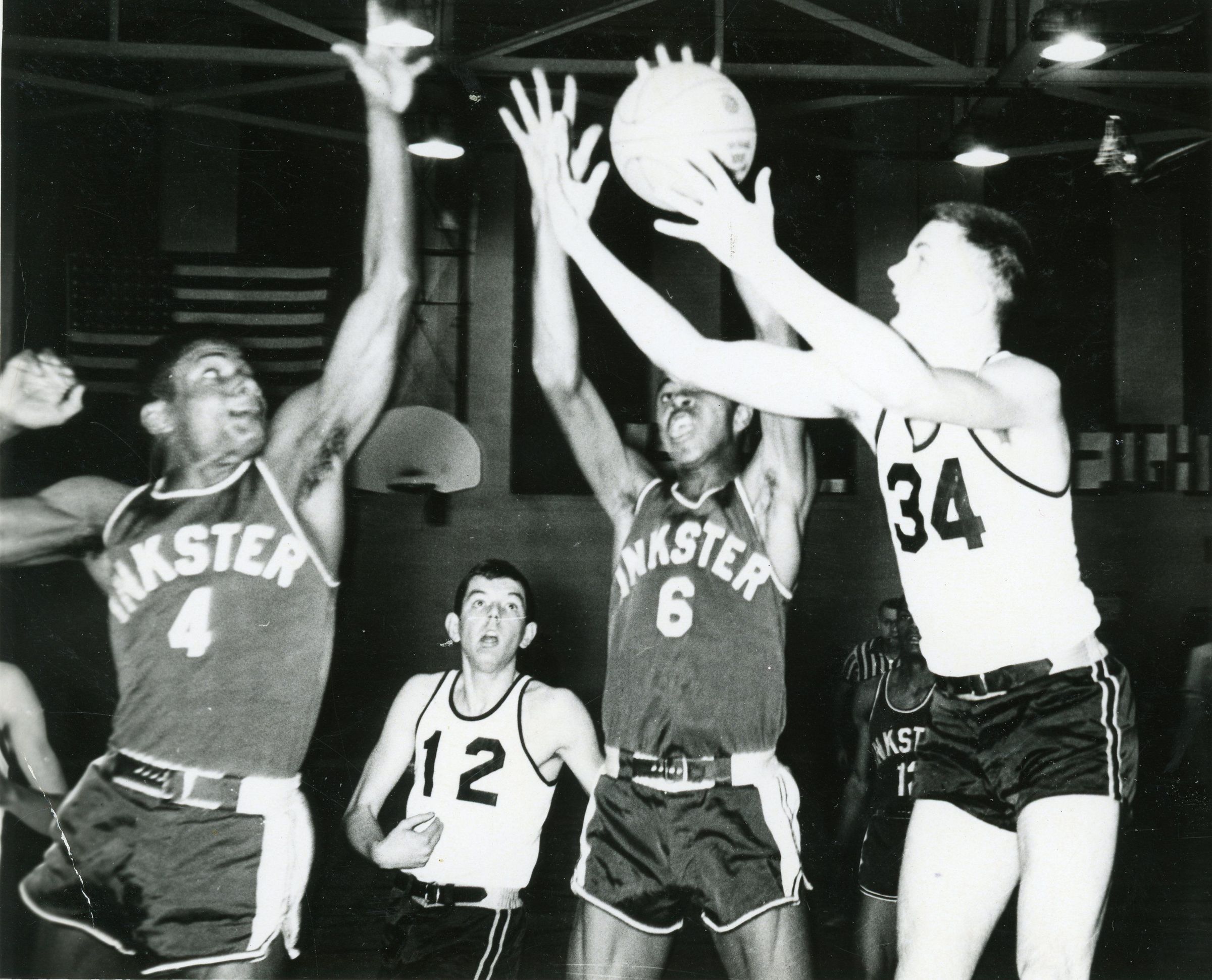1961 WHS Basketball Game. Score was Wayne 71 to Inkster 77. Corky Hayes is WHS #12 and Bob Hayes is WHS #34.