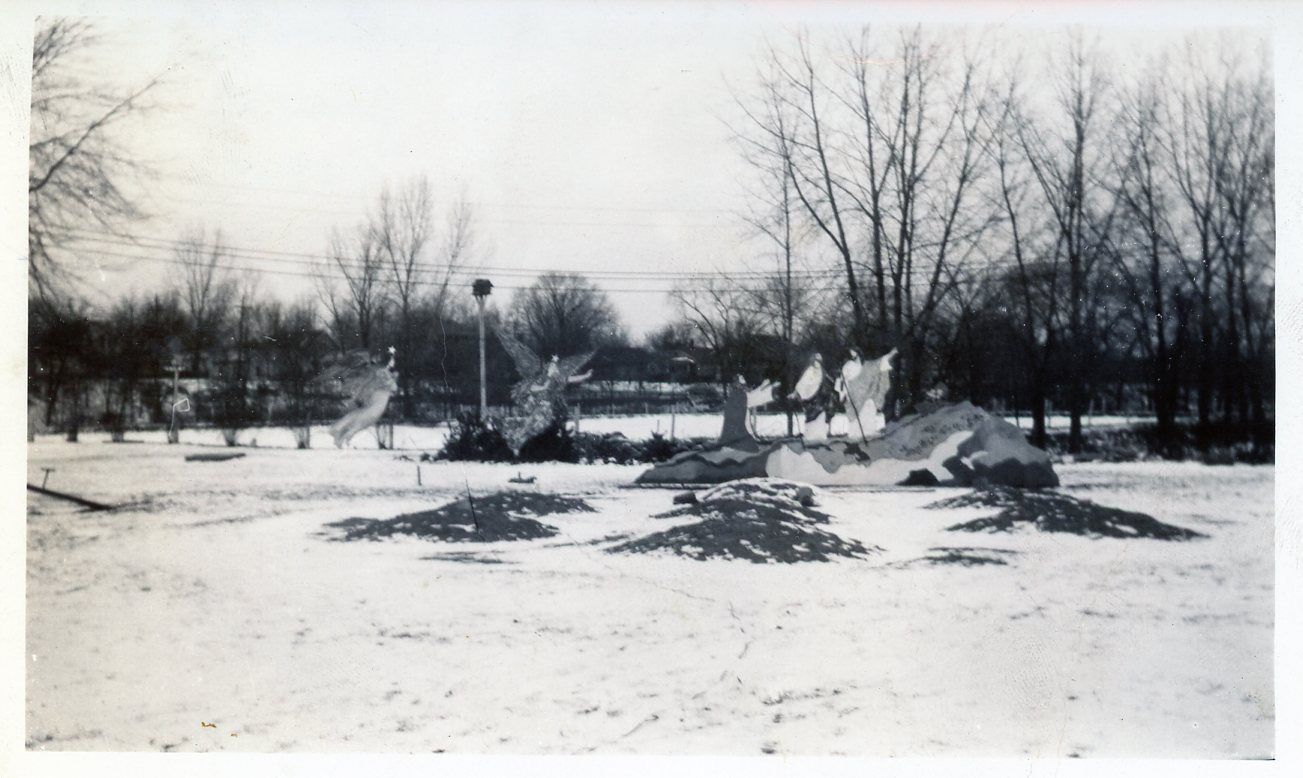 Christmas decoration on Wayne Road in front of Pump Station in 1935, in the Village of Wayne.