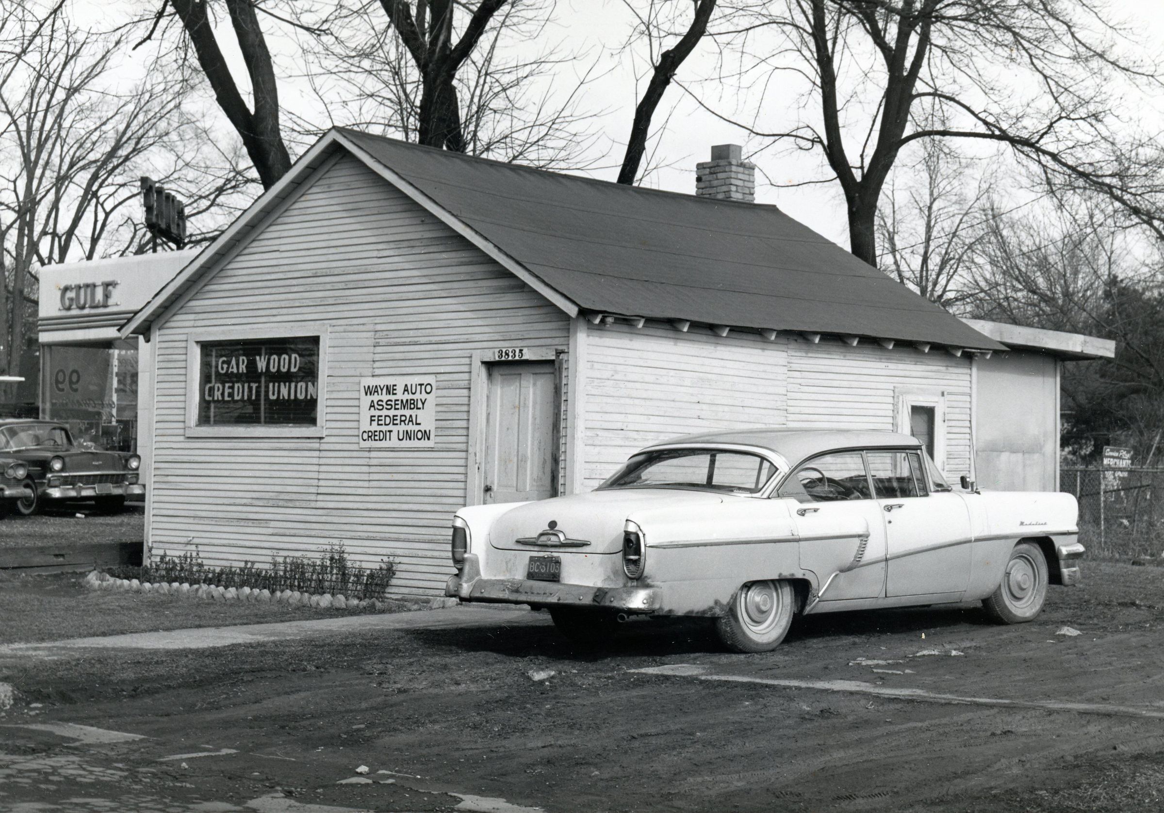 Gar Wood Credit Union. Partial Gulf station visible, unknown address or date.