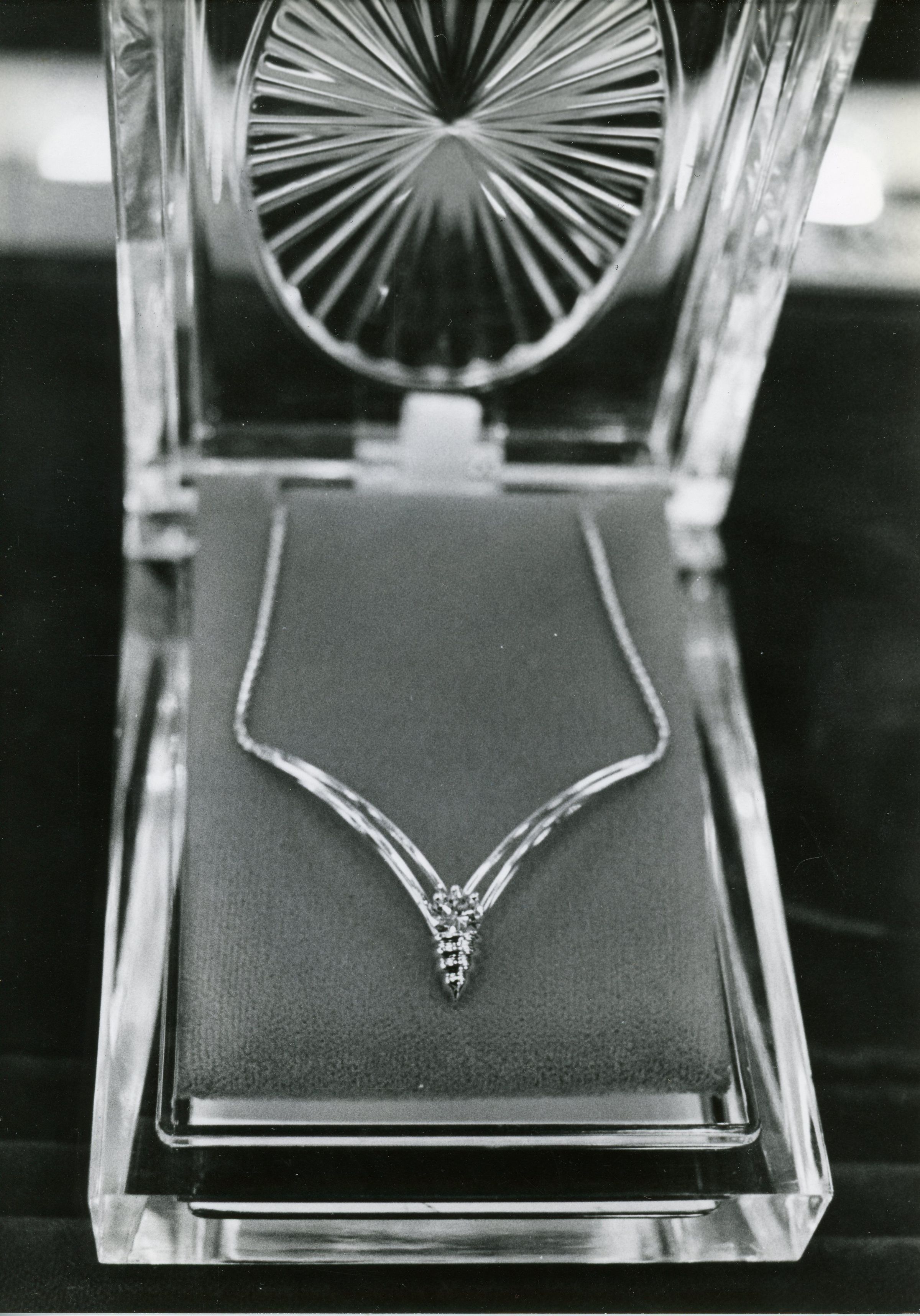 Leo's Jewelry sample product. Photo taken by Lothar E. Konietzko for the Wayne Eagle on Dec. 1, 1982.