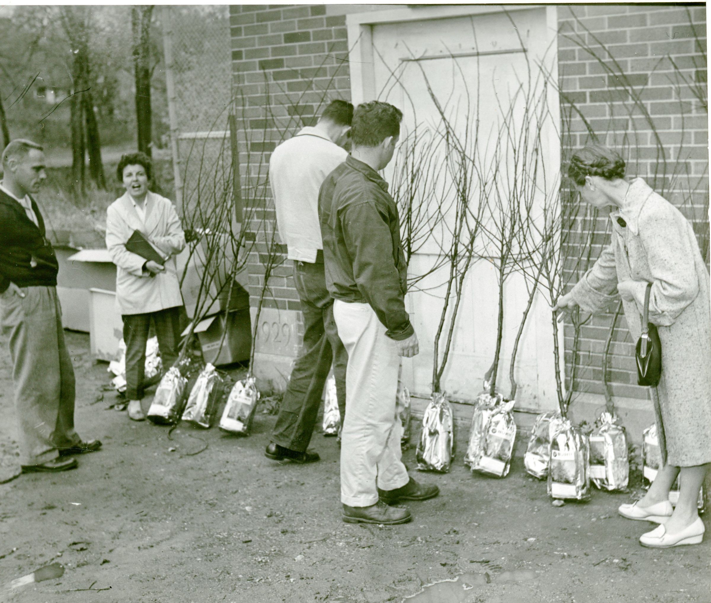Garden club selling crab trees. Darlene Hisey with the book is the saleswoman.