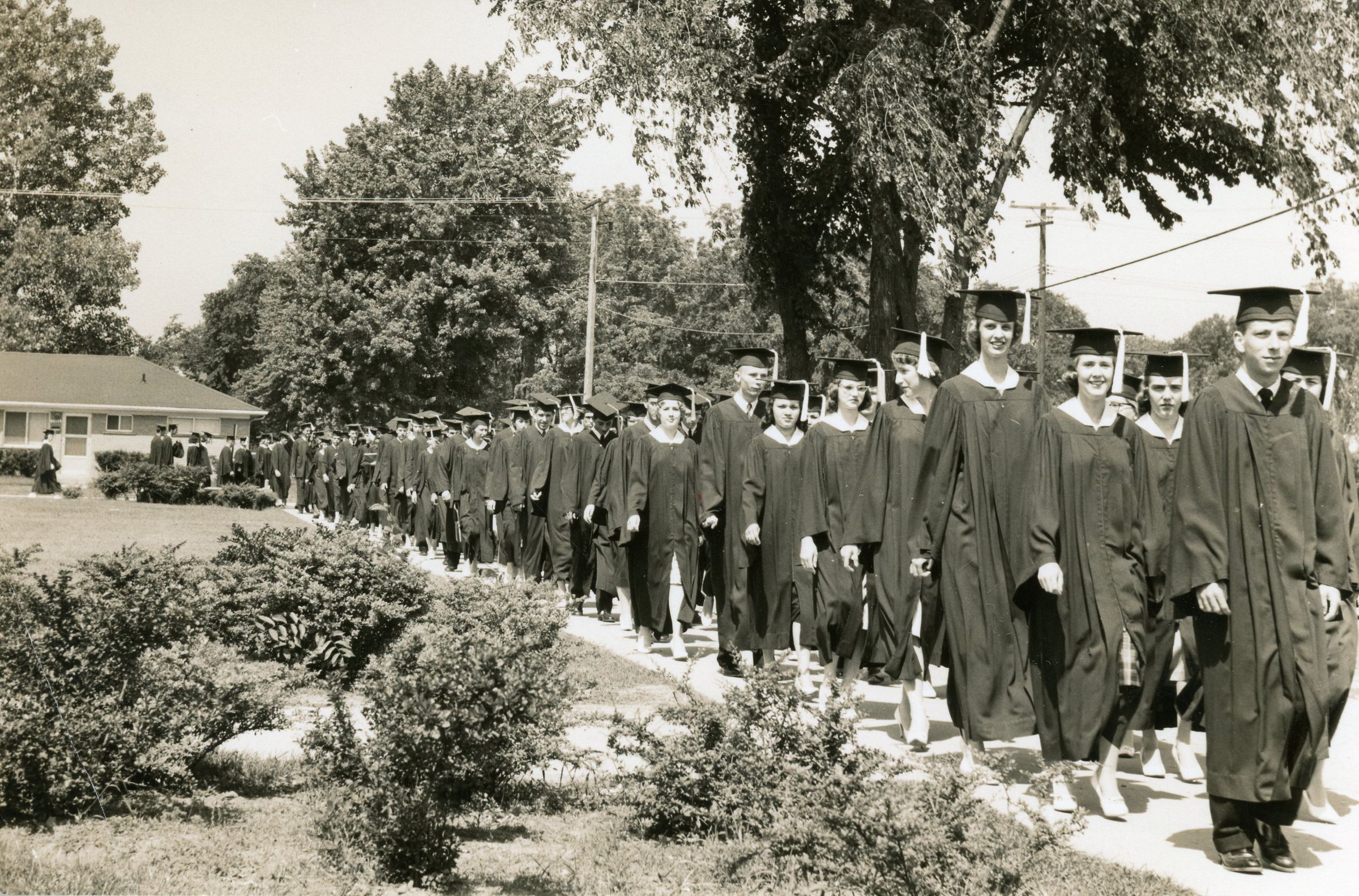 Wayne Memorial High School, Graduation walking to the auditorium. June 1960. Honors Convocation. Connie Britton 3rd from front