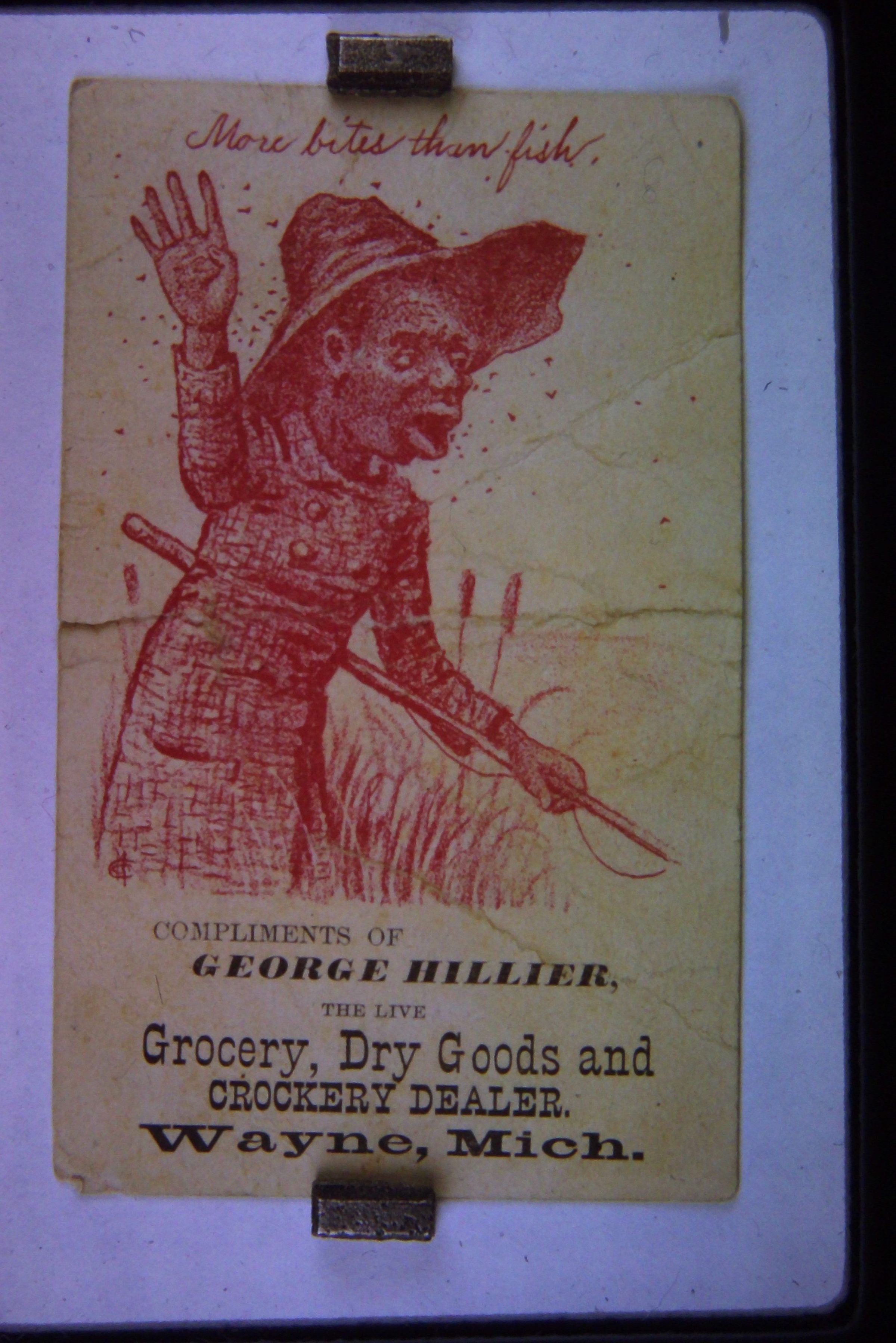 George Hillier Dry Goods advertisement. *This advertisement contains a racist caricature, and is a historical product of its time.*Cataloged By