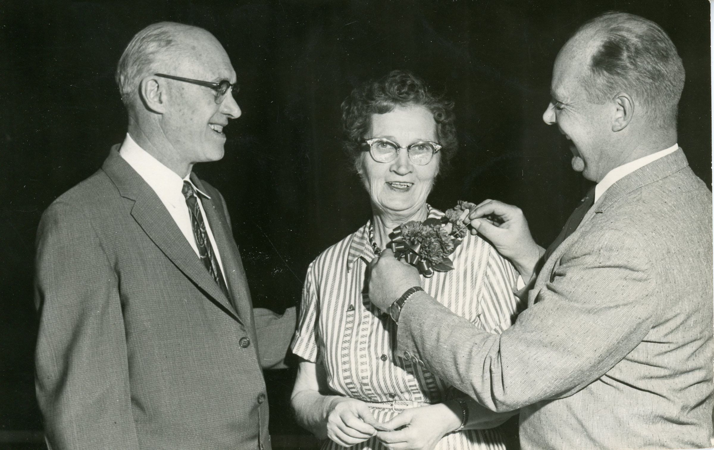 PD Graham and Don Pashke bid a teacher farewell on her retirement.