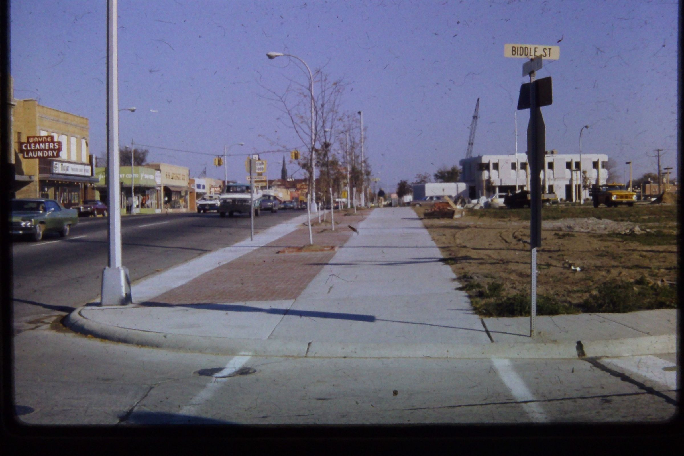 Michigan at Biddle, looking East. 1974. Post urban renewal