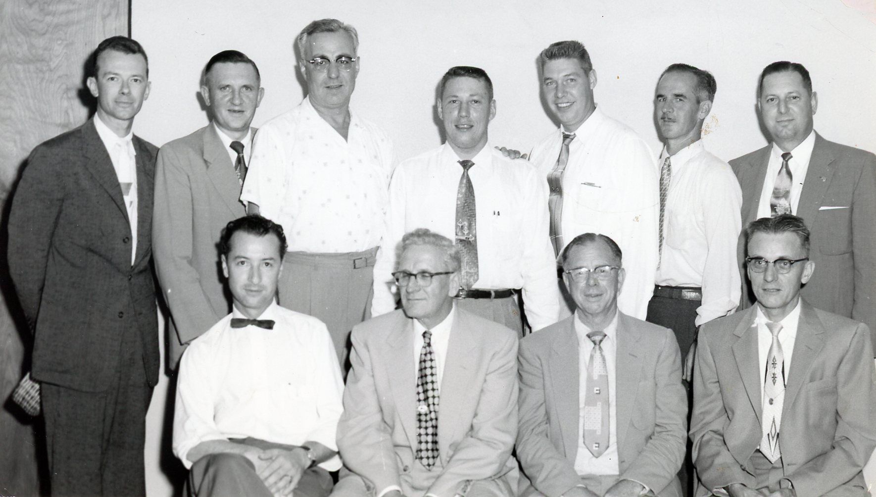 1951 Western Wayne County Auto Dealers. Back Row: Dale Beetler, Petrowski, unknown, Allan Carpenter, Dick Schanes, Bob Henderson, Carl Squire. Front row: Jack Belle, Harold Dietrich, Red Rigga, Ed CarpenterCataloged By