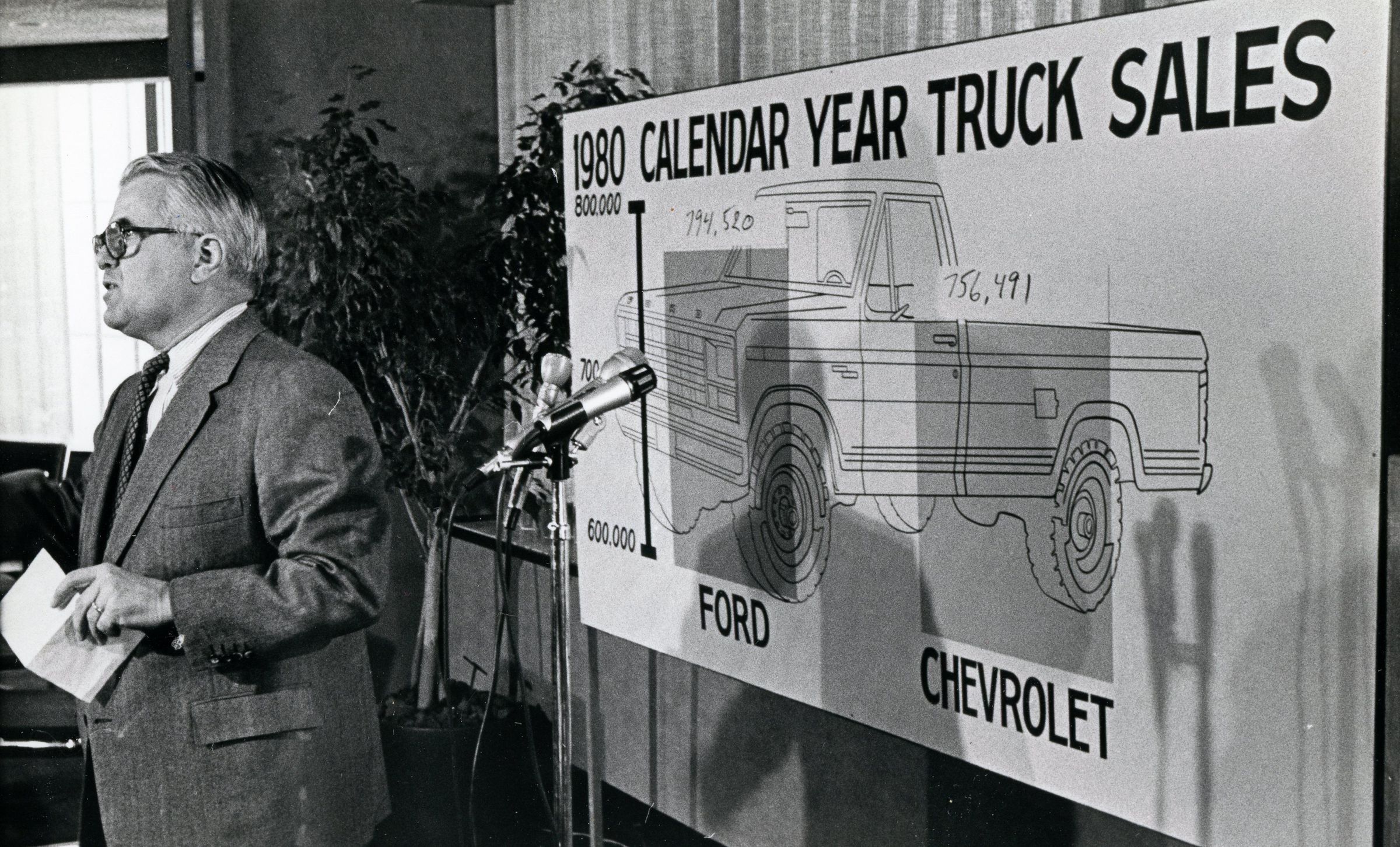An Employee talking about 1980 Calendar Year Truck Sales.
