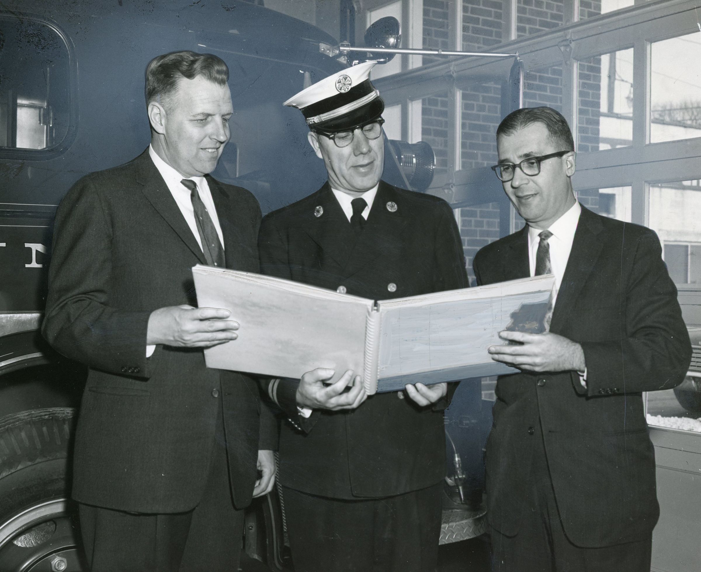 Joe Roberts (Ford Motor Co.), Fire Chief Henry Goudy, Unknown (Industrial relations, Ford Motor co.)