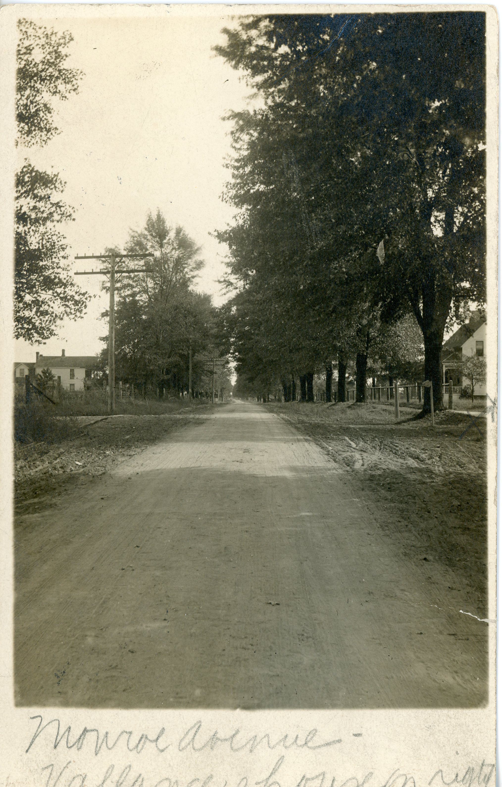 Wayne road looking South from Near Harroun Parkway. Vallance homestead, 4916 Wayne Road, west side, visible at right. Home still survives as of 2024, brick addition added to front.Cataloged By