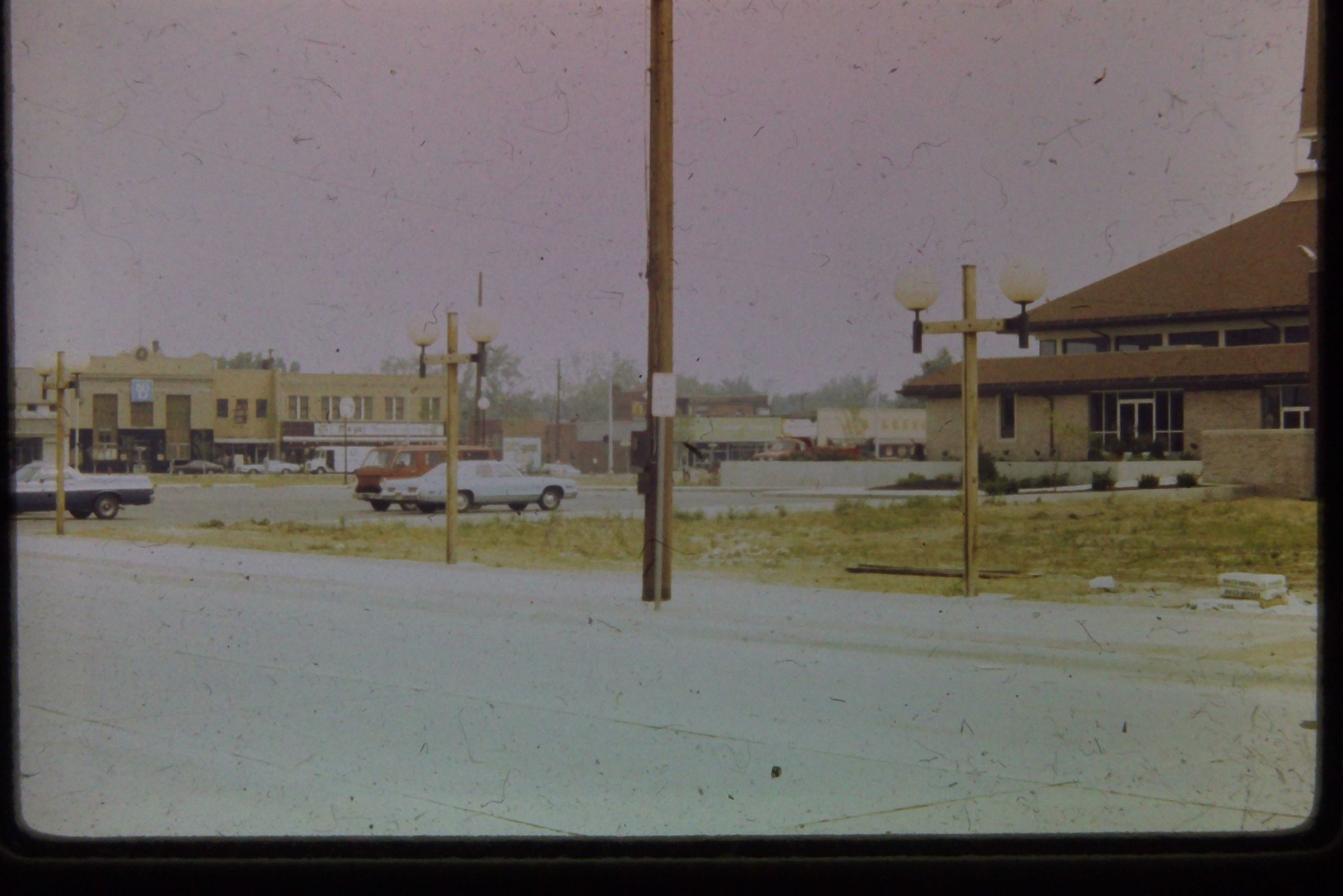 Biddle Street looking NE. Congregational Church parking lot and building at right. Post Urban Renewal.