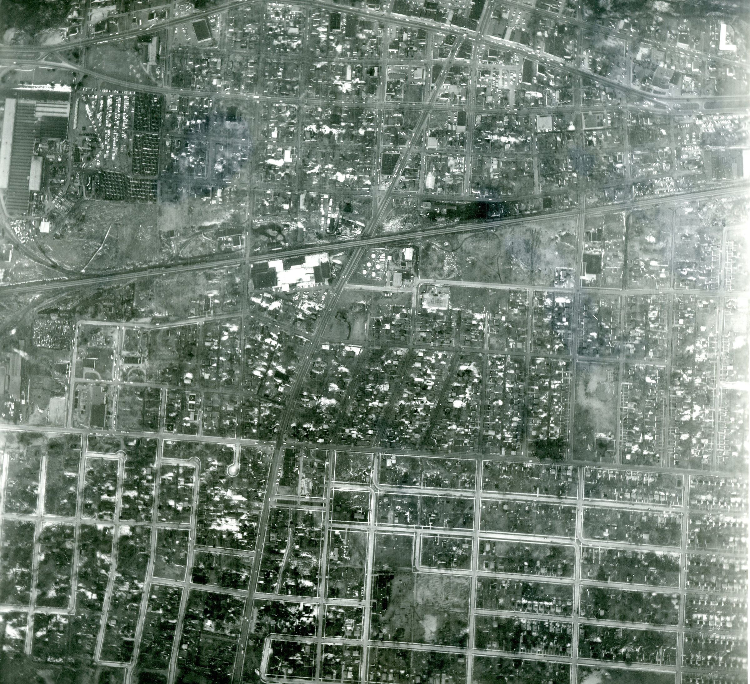 SW part of downtown. Gar Wood plant at top left. Michigan Avenue at top of picture.