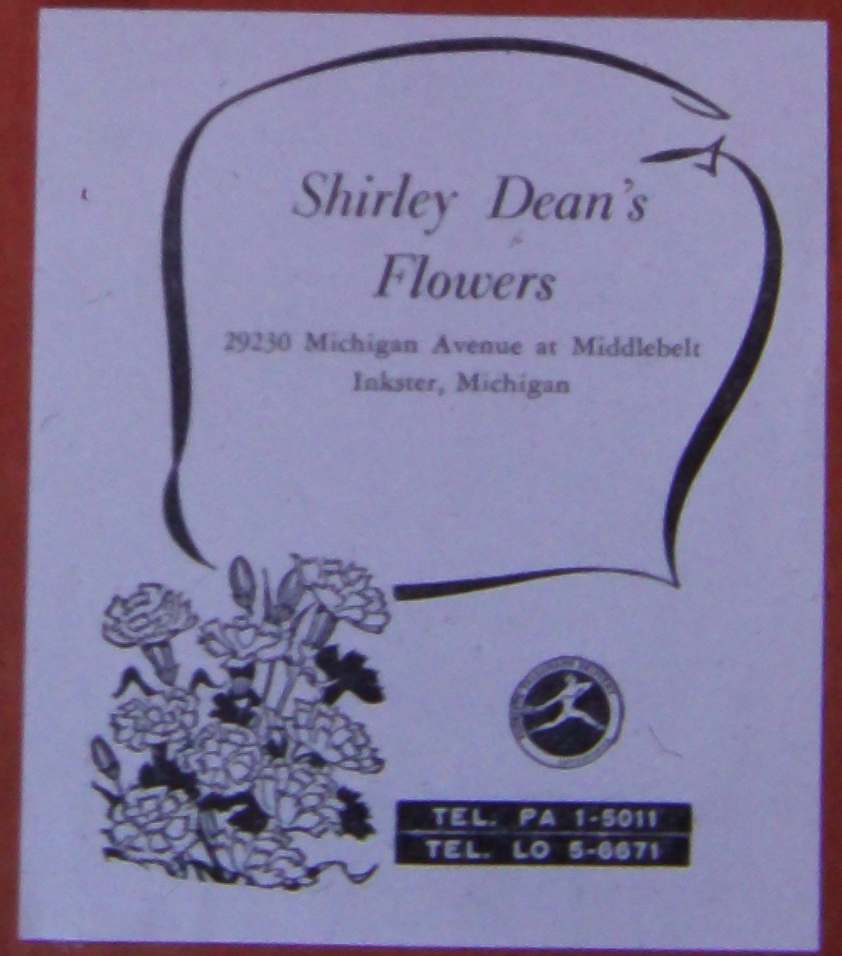 Shirley Deans Flowers - 29230 Michigan, Inkster. 1961 ad