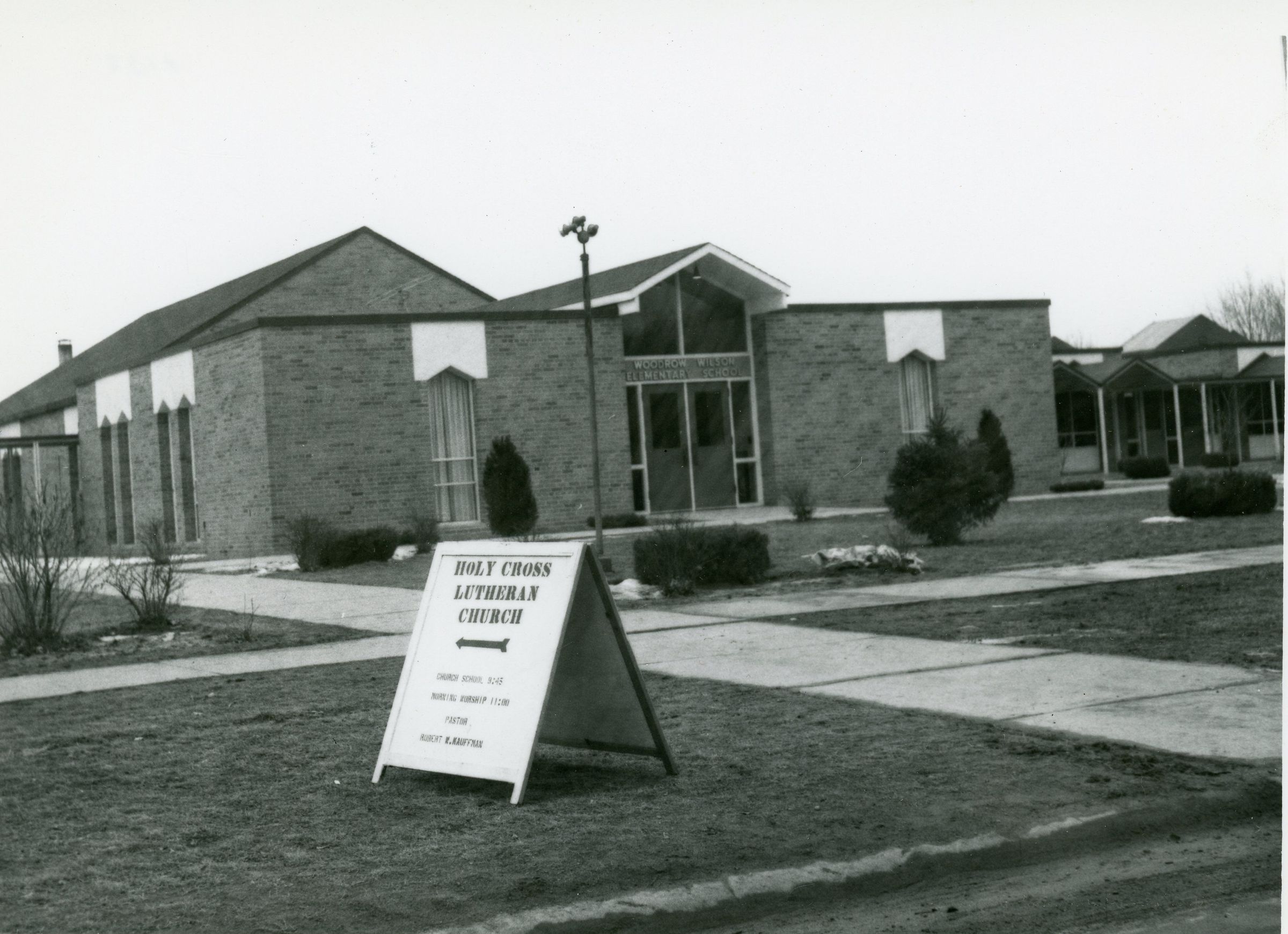 Woodrow Wilson School. Wildwood Avenue. Sign for Holy Cross Lutheran Church.
