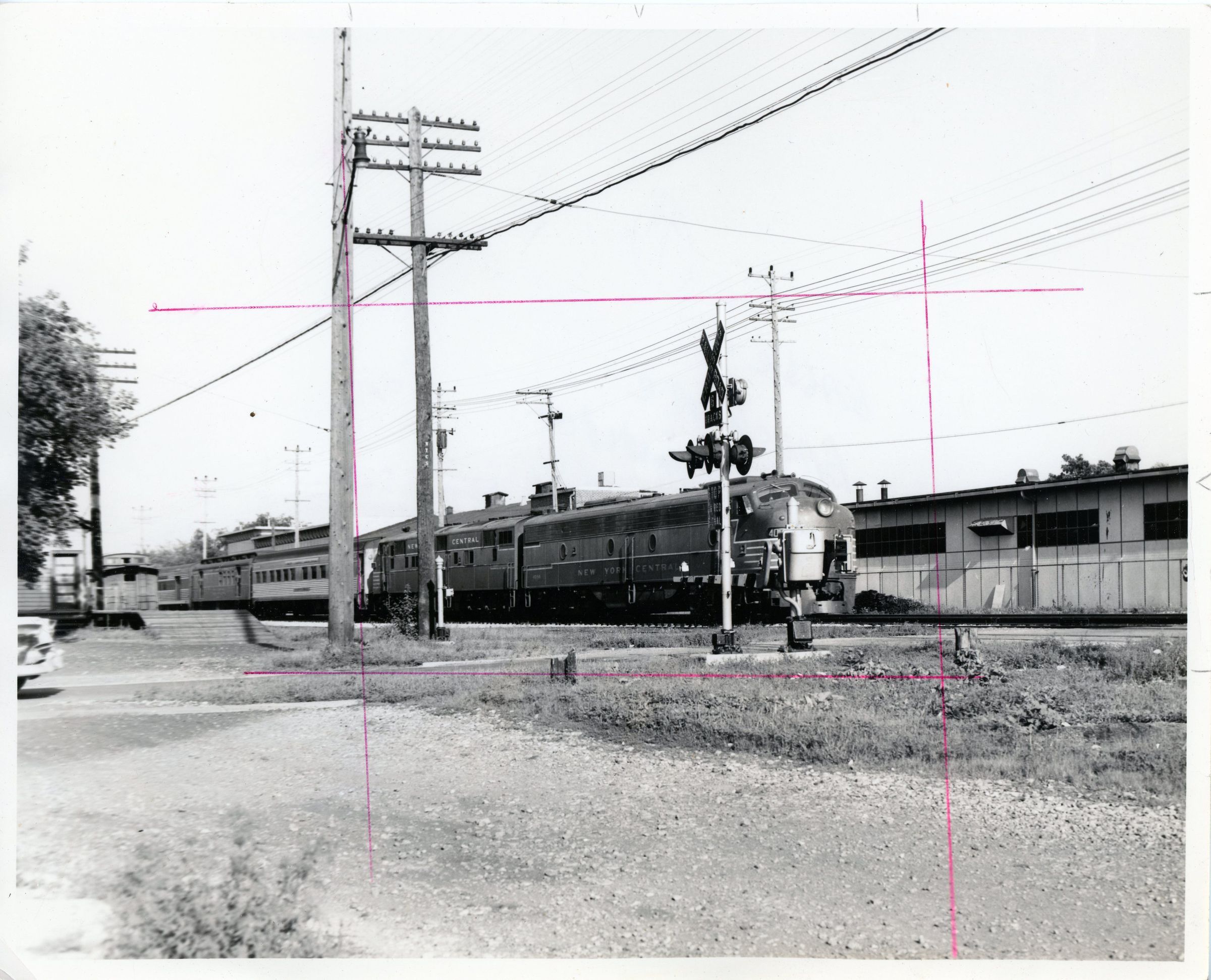 Train on MCRR at Sophia. Freight house on left, Unistrut on Right.