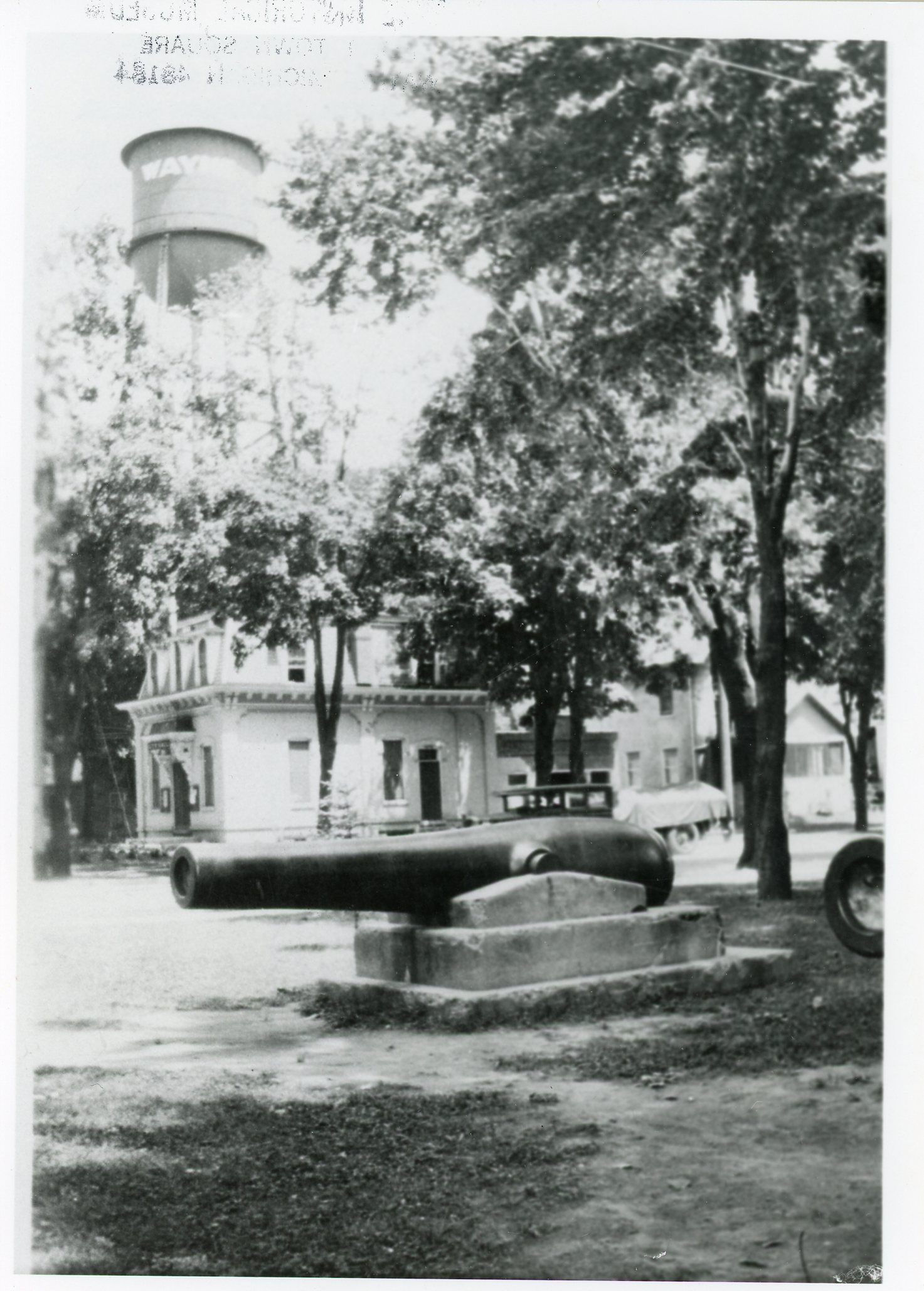 Village Hall, Water Tower and Cannons 1935. Original photo owned by Ruby Rose