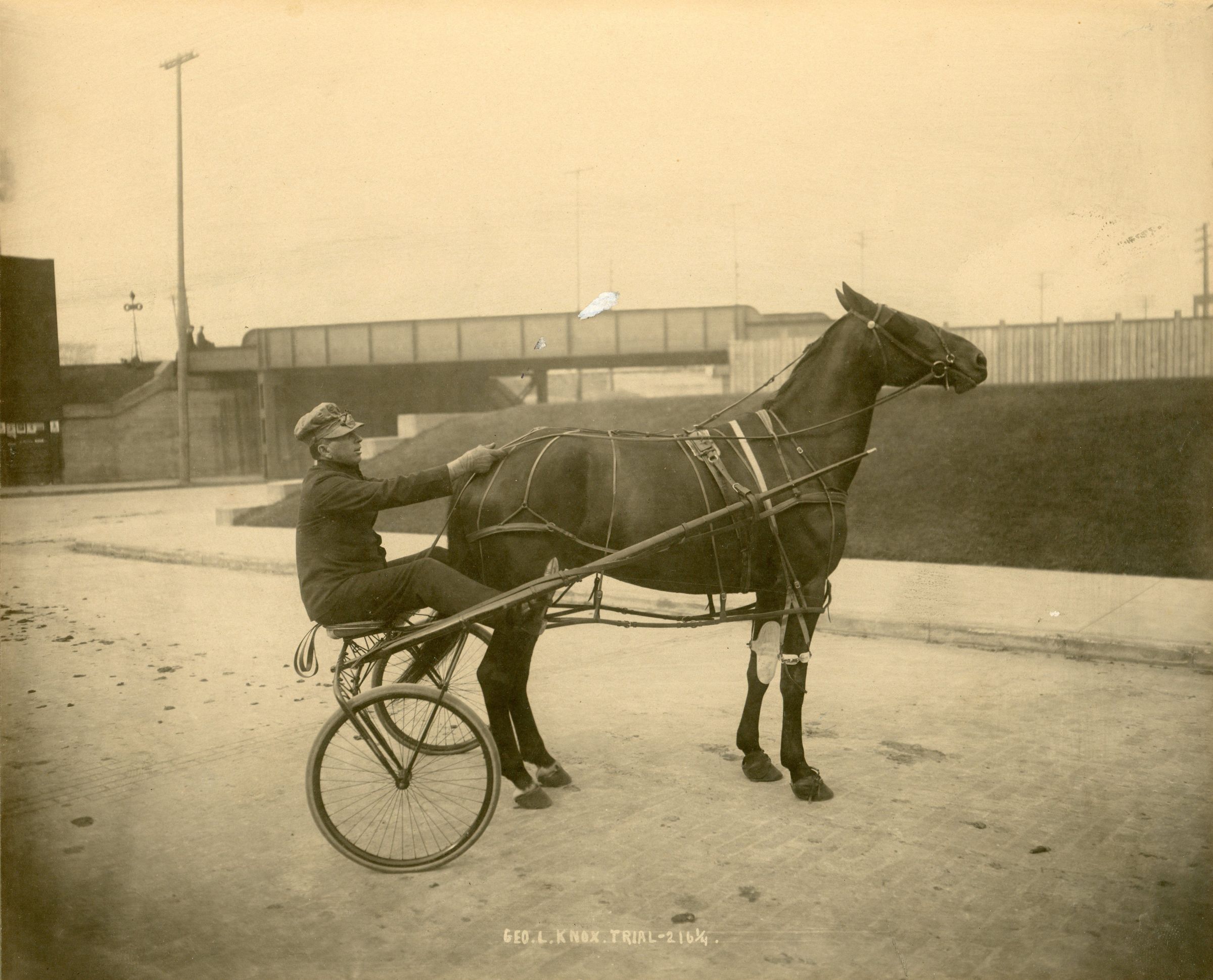 Horse Racing. From Eliza Dowling Estate, Possibly Tony Snyder and his horse. Location unidentified. Bottom of Photo says George L. Knox Trial.