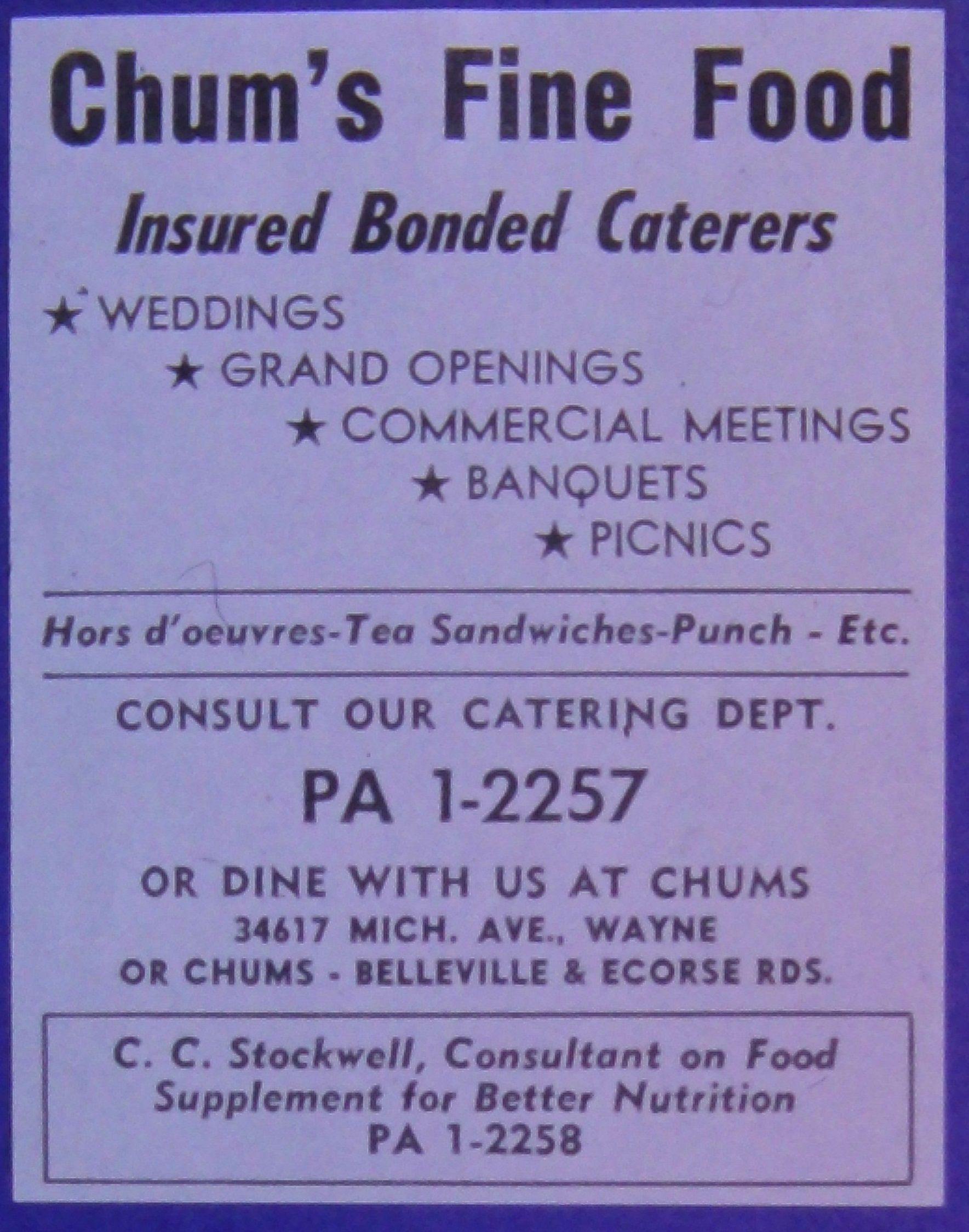 34619 & 34617 Michigan - Chum's Fine Food, 1951-1966. South side of Michigan between 2nd and 3rd. Popular Donut shop