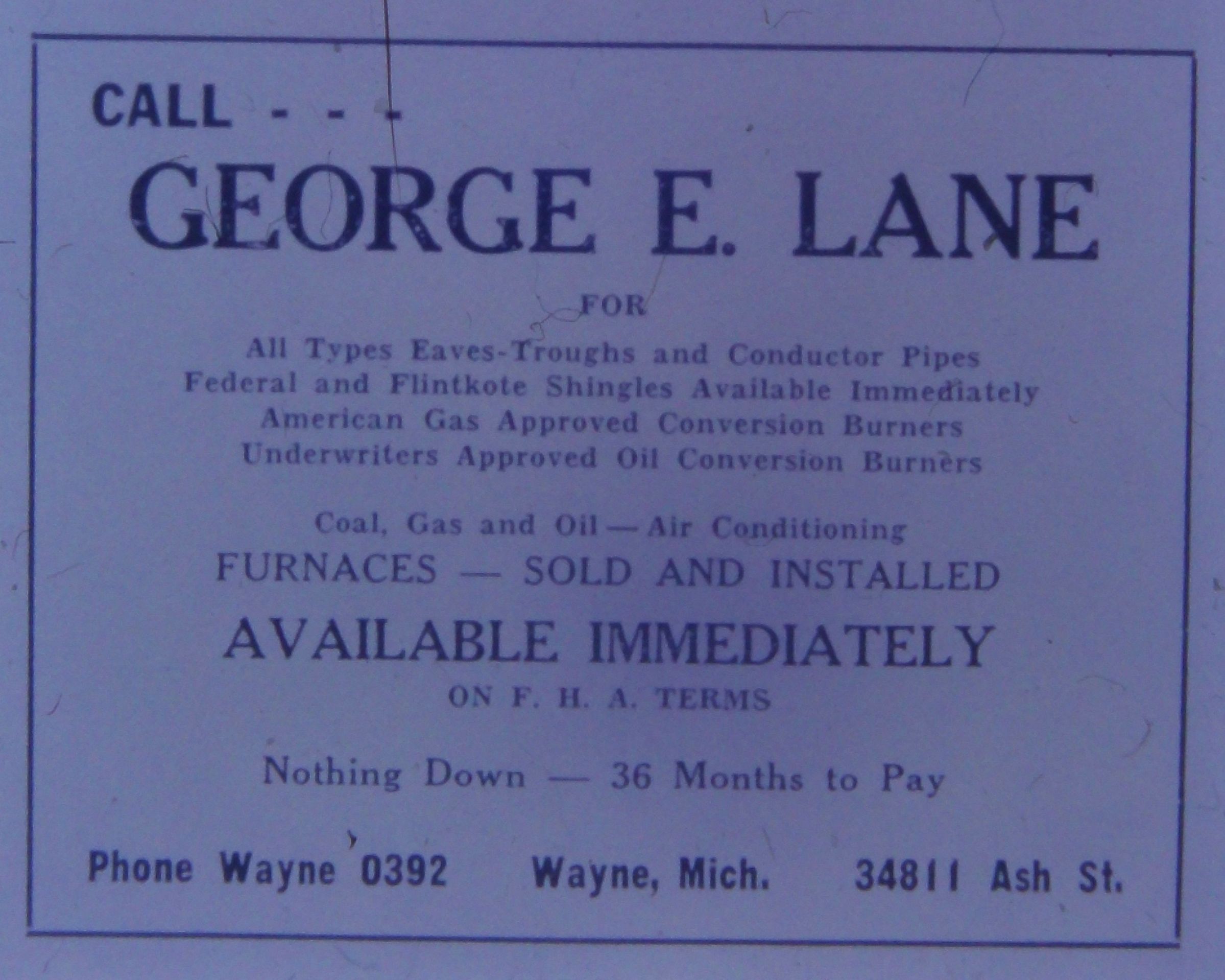 34811 Ash - George E. Lane Furnaces, eaves troughs, shingles,
