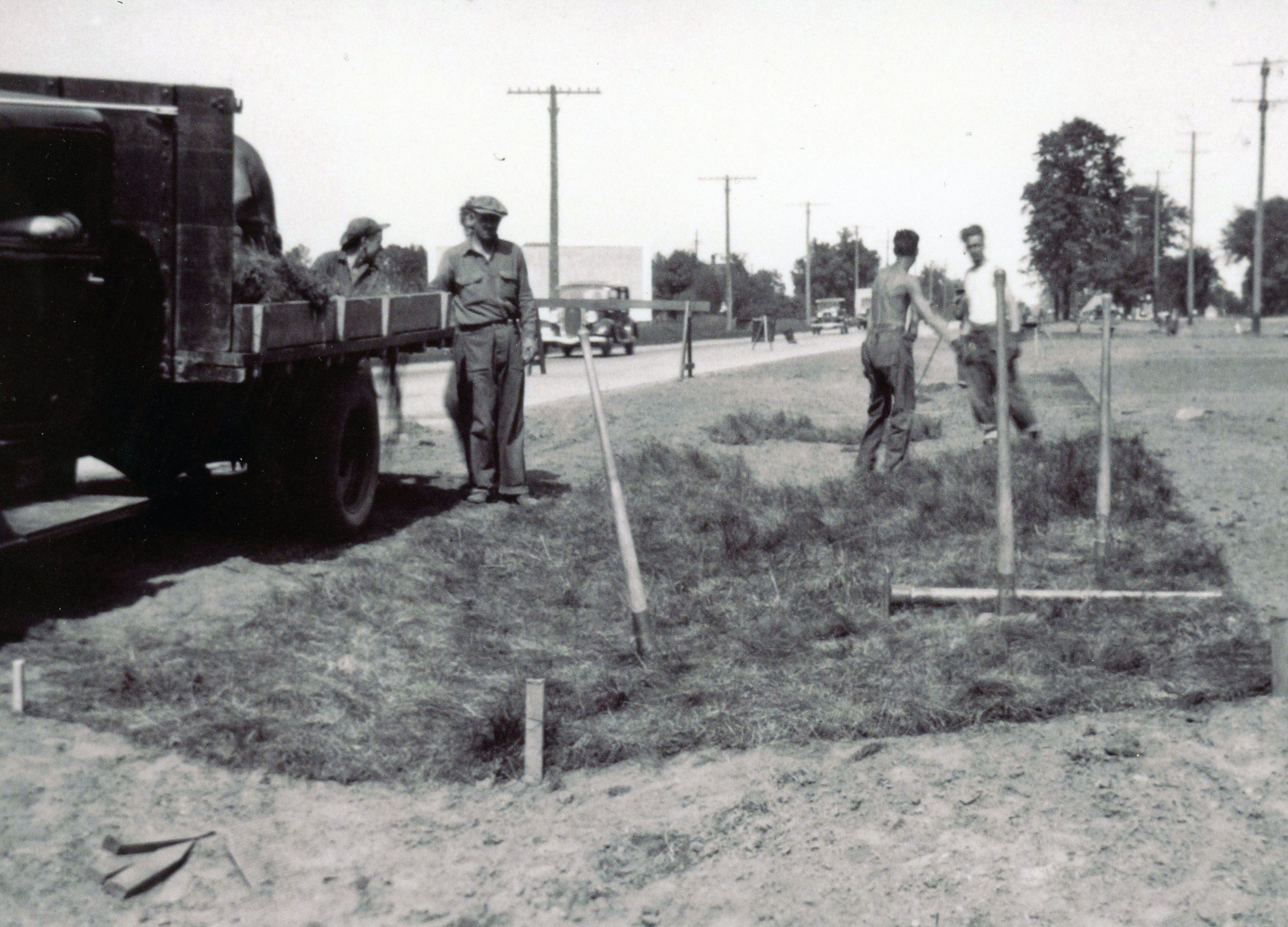 Landscaping and Groundworks done by CCC along Michigan Avenue. Men and Trucks
