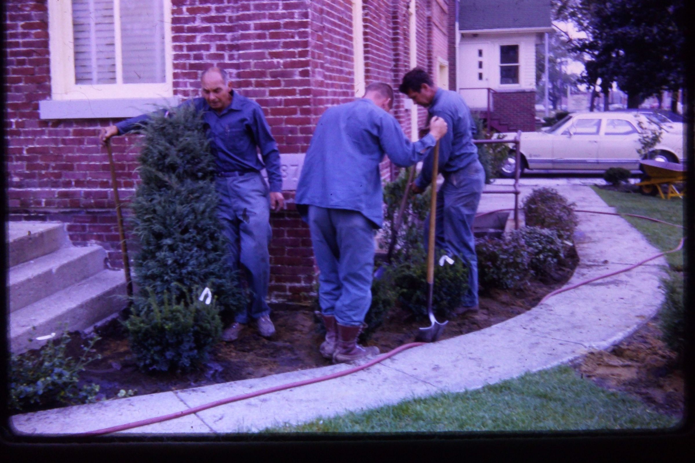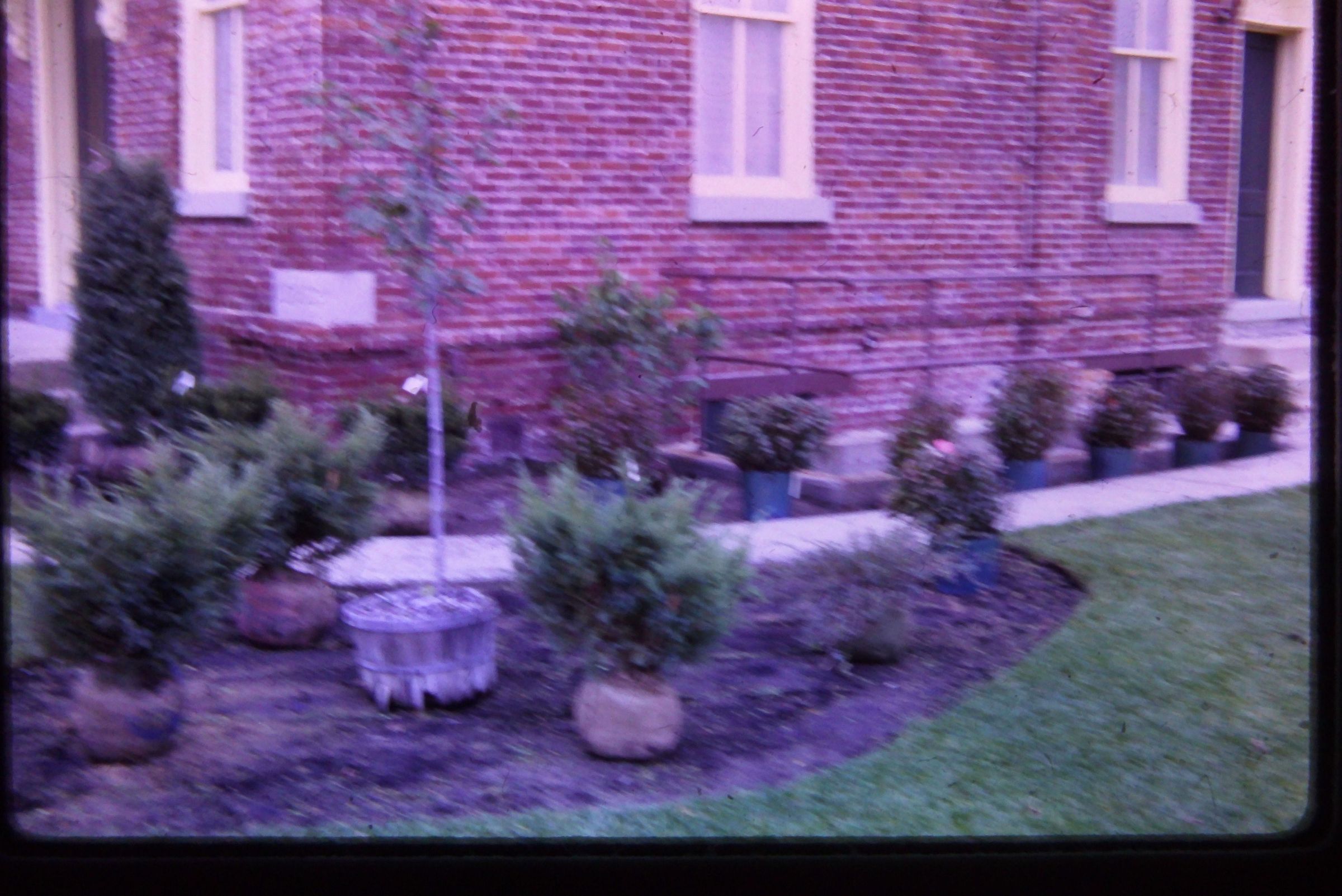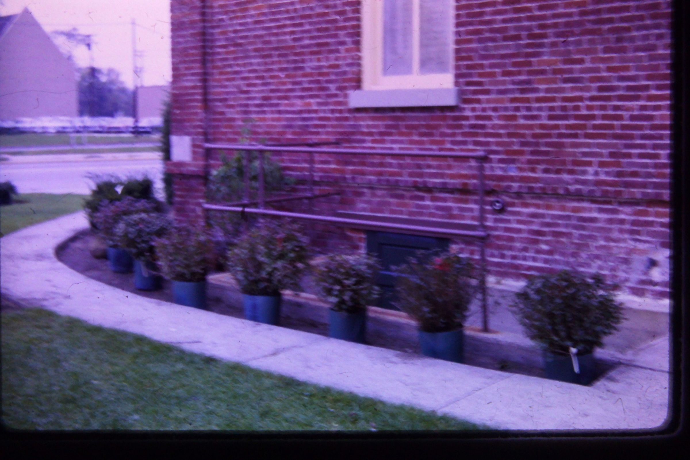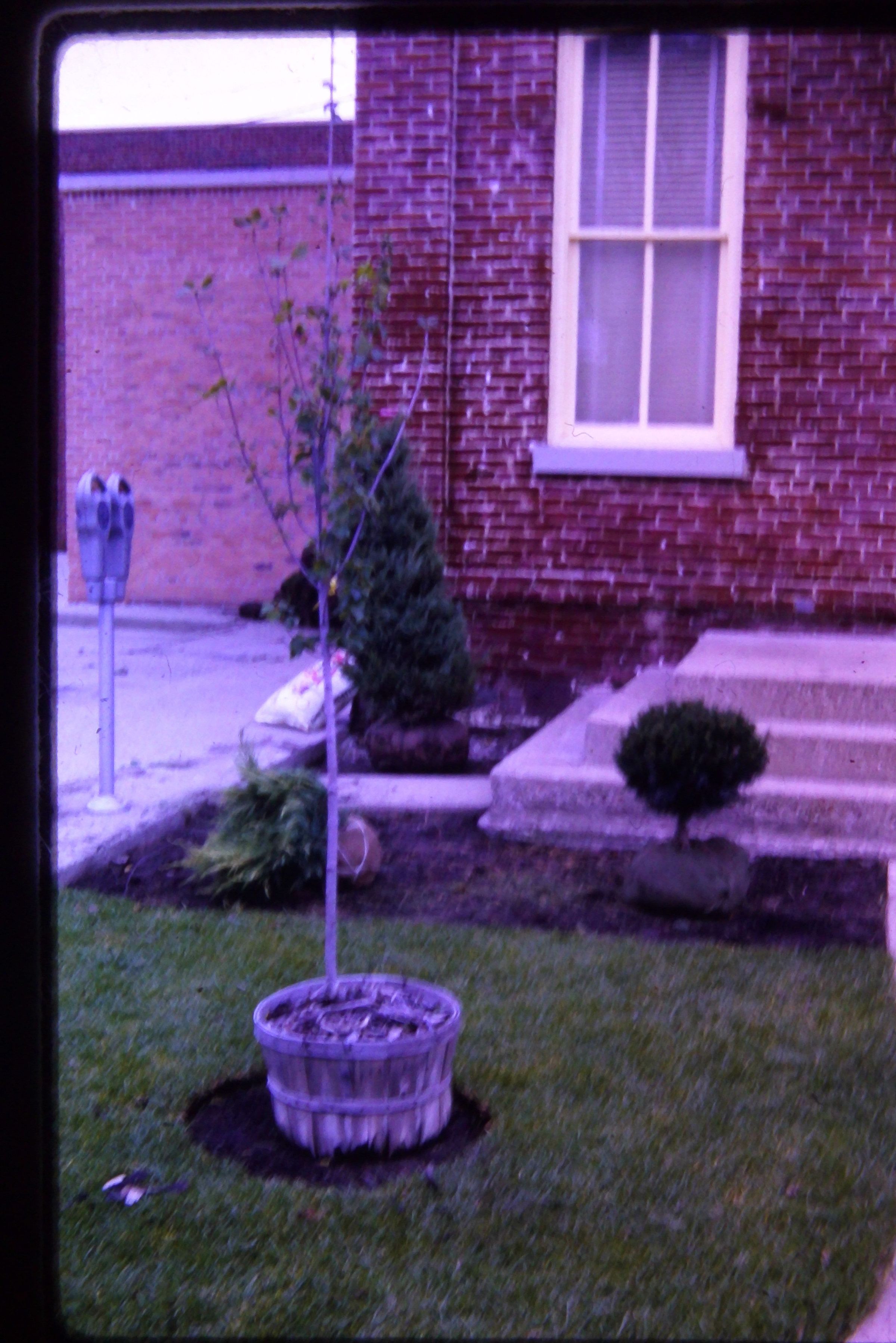 Mildred Hanchett, Marion Downes, Lorraine Ujda and Peg Bird with Wayne Historical Museum Sign in 1968.