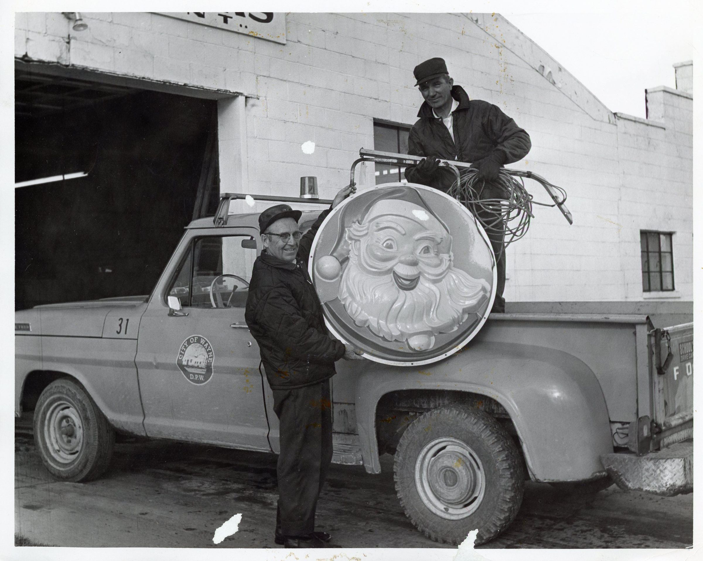 D.P.W Workers putting up Christmas Decoration. Photo taken by Lothar E. Konietzko for the "Eagle".