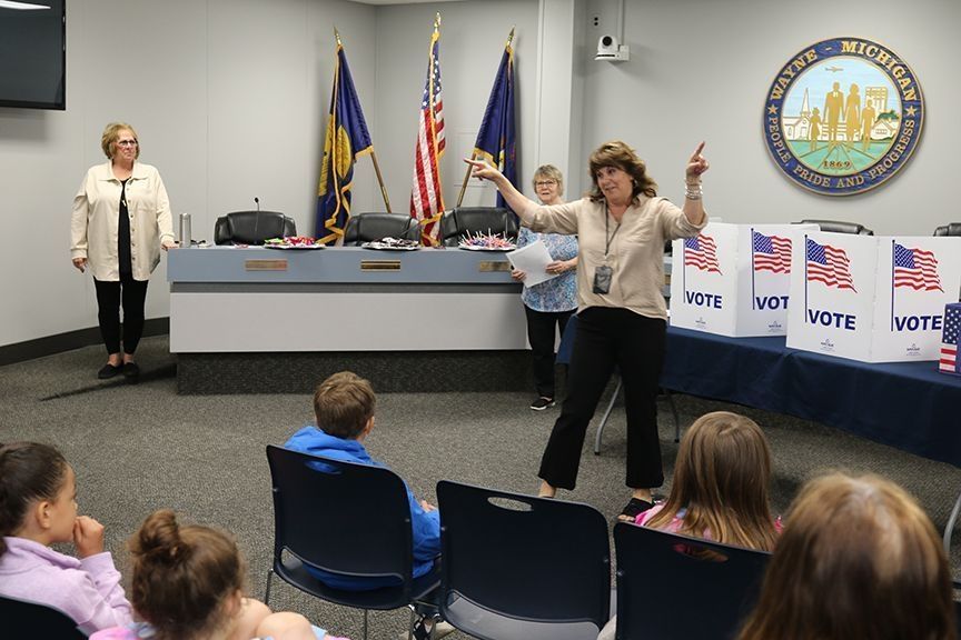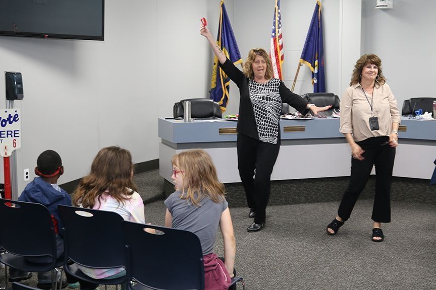 June 2025 Visit to city hall by Schweitzer Elementary, in City Council chamber