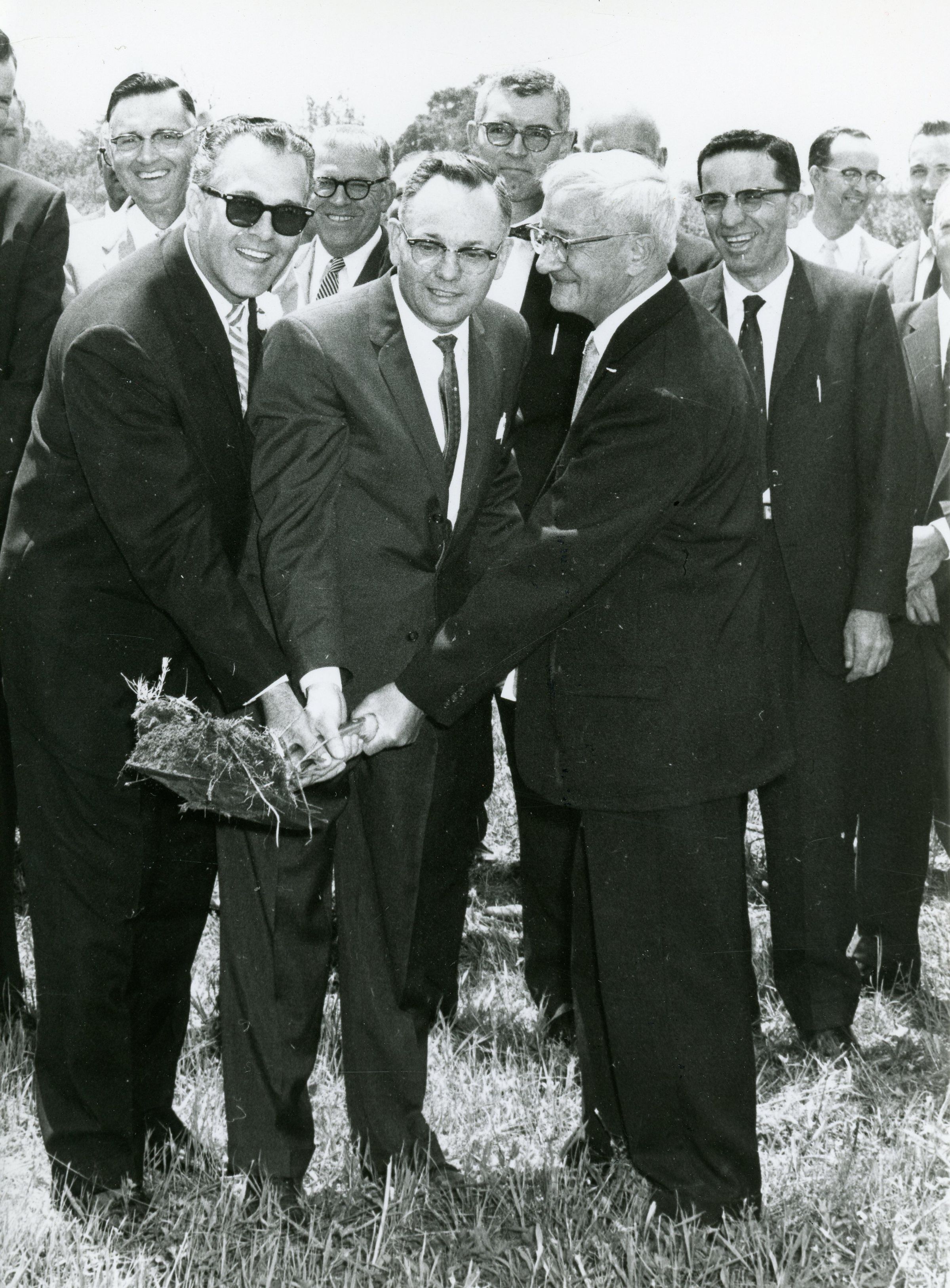 Groudbreaking. Pastor Vernon, John Nothnagel, Duncan Millar. June 1961.