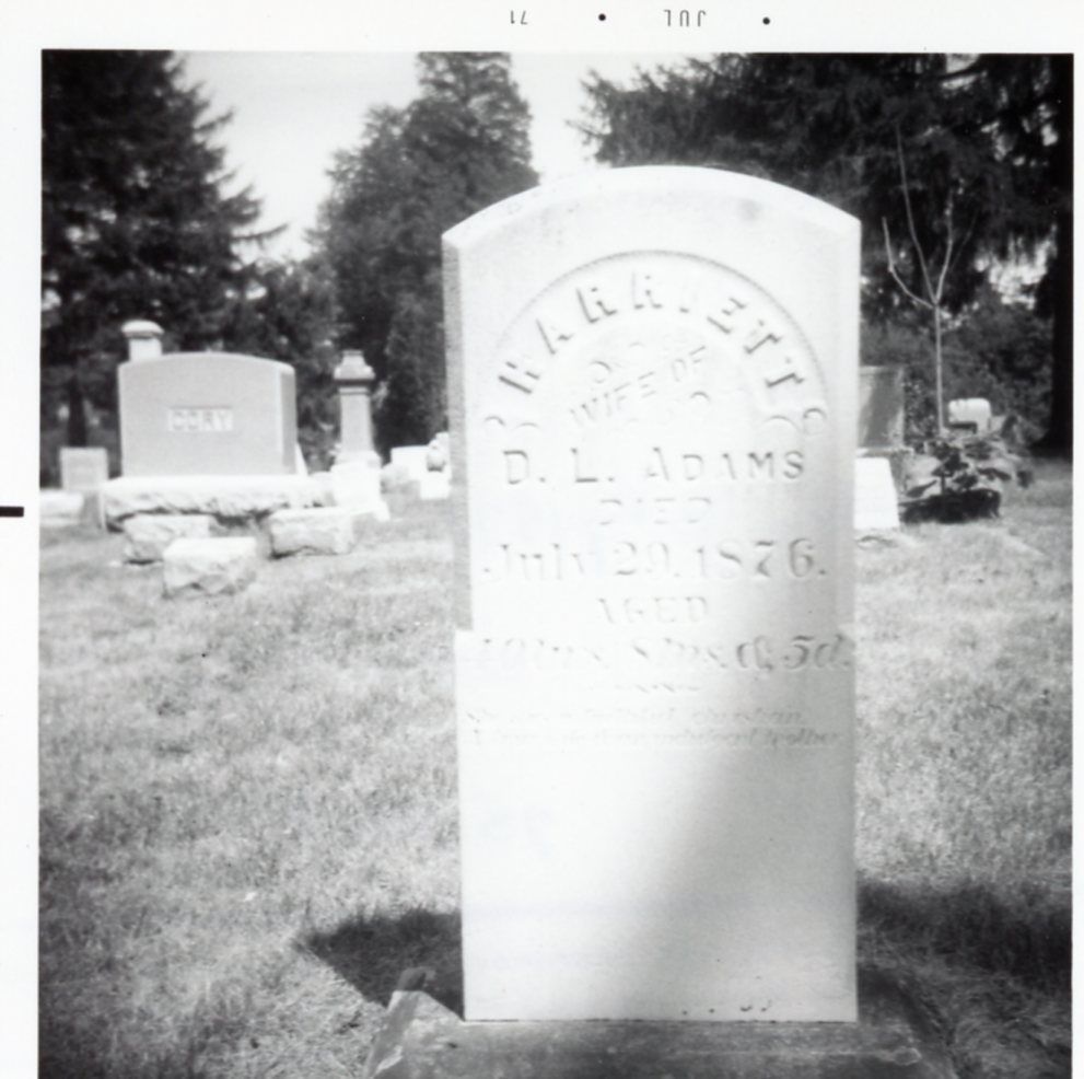 A typical old gravestone. This one of Harriet Adams is in the Glenwood Cemetery